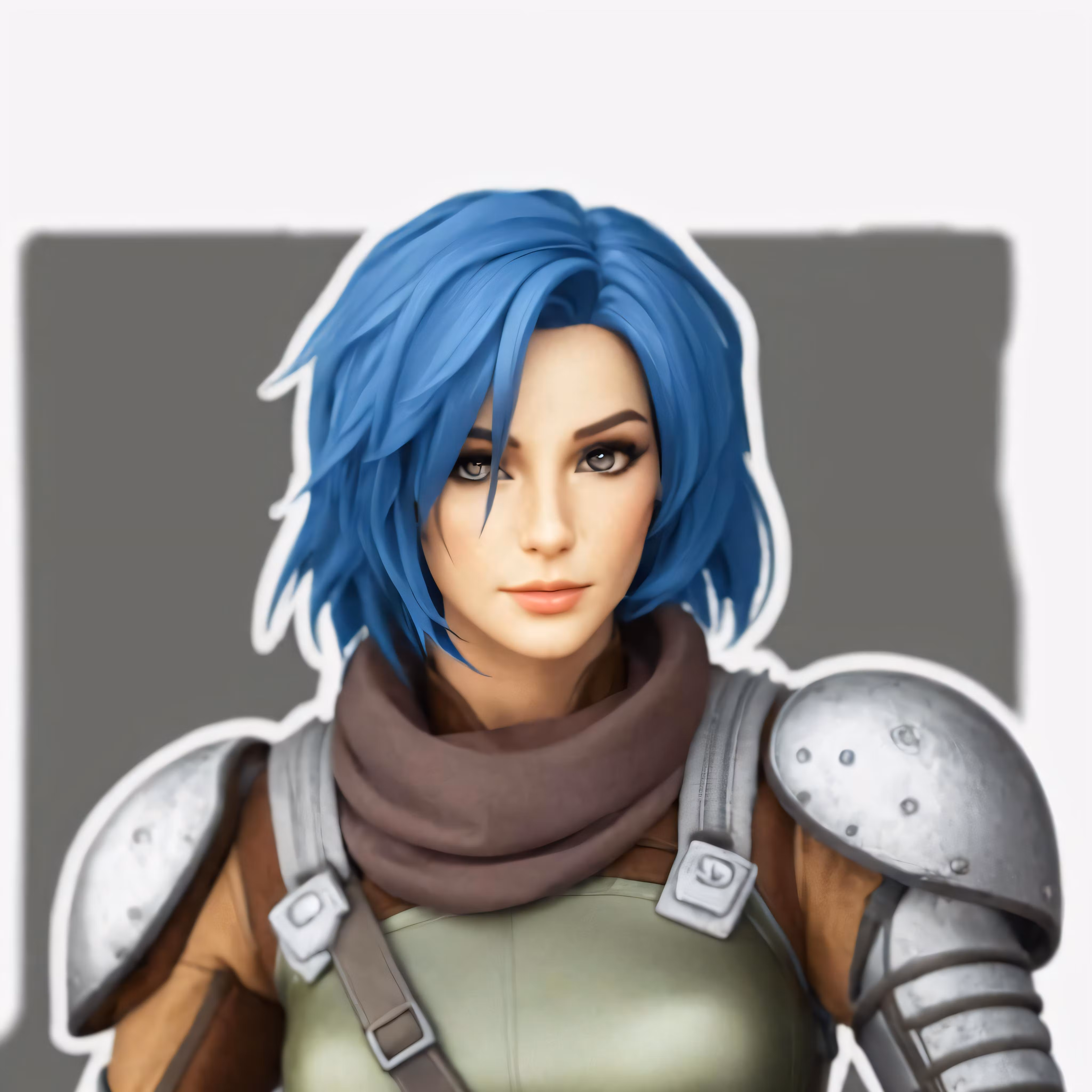 High resolution picture, free to use, a woman in blue hair with an arm up and a scarf around her neck