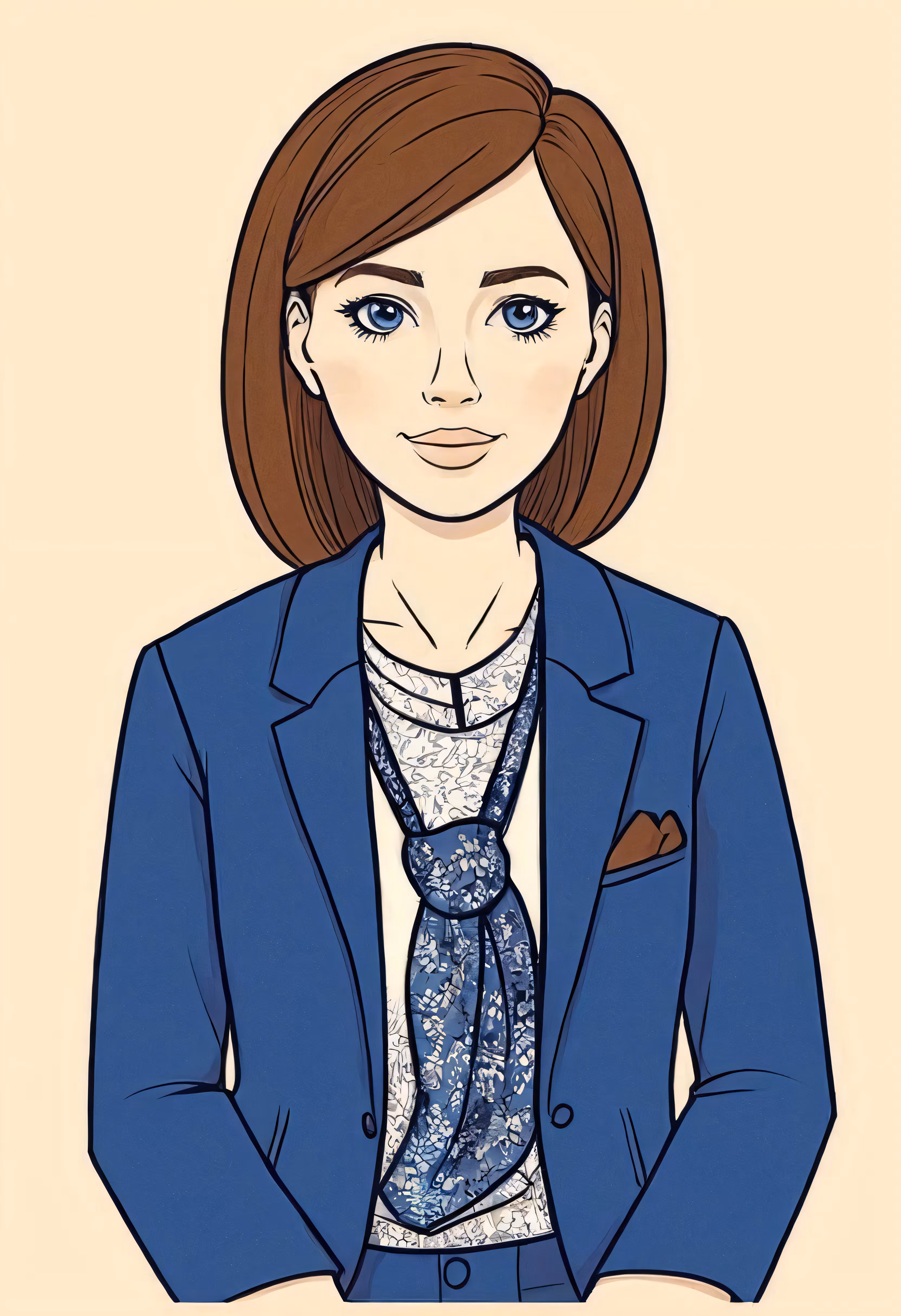 High resolution picture, free to use, a woman in blue jacket and necktie