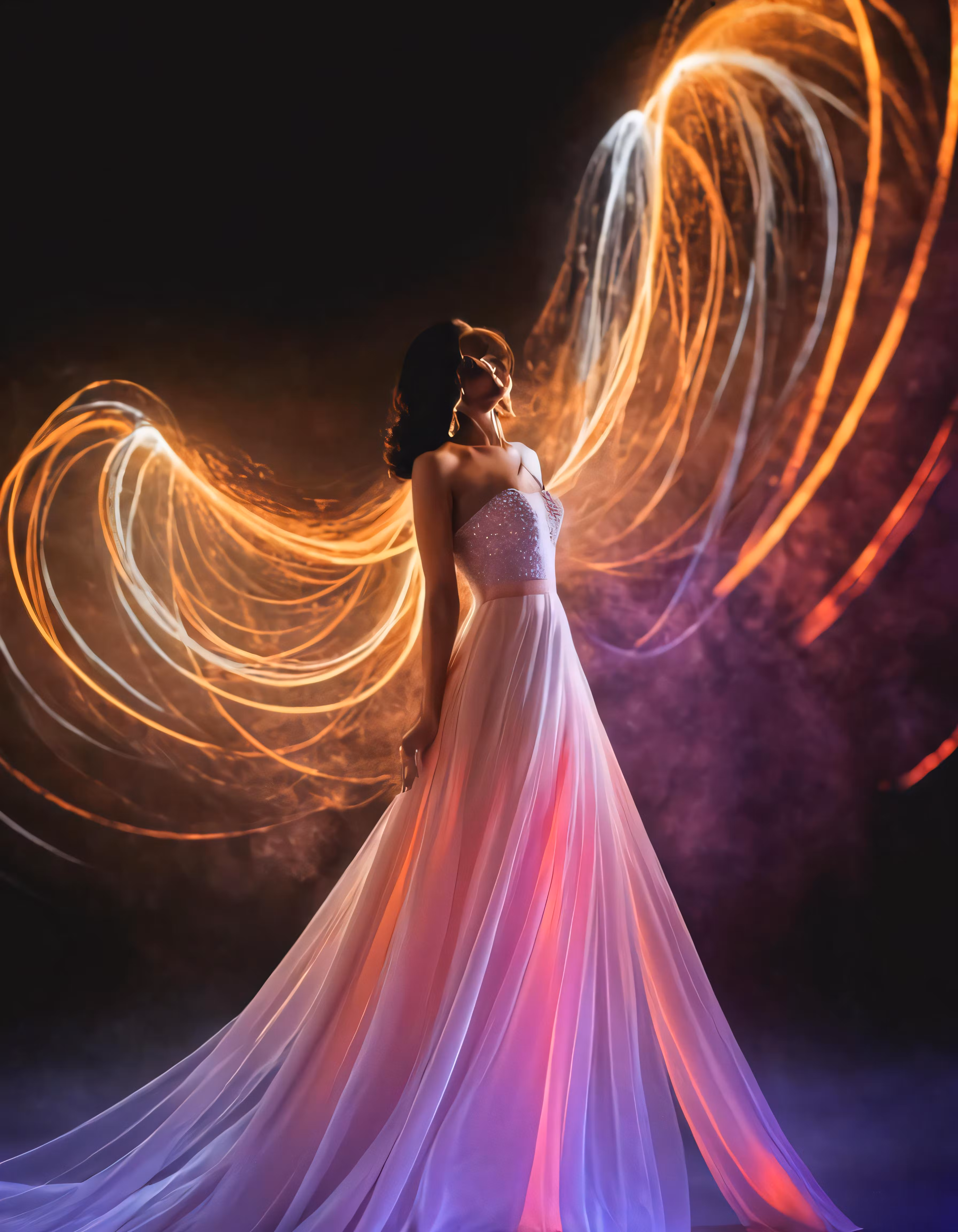 High resolution picture, free to use, a woman in white dress with long train, motion blurs