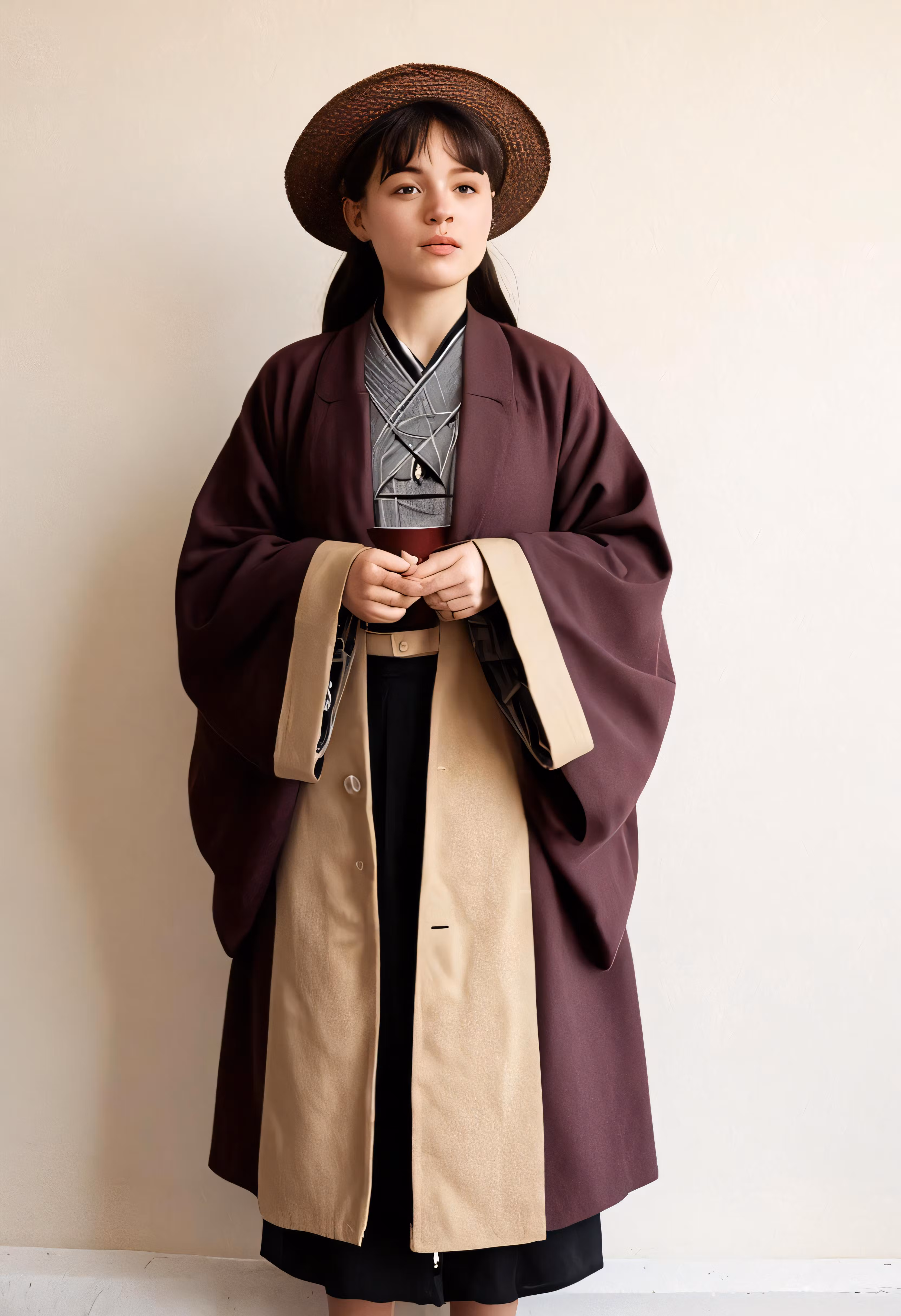 High resolution picture, free to use, a woman is dressed in a coat, dress and hat
