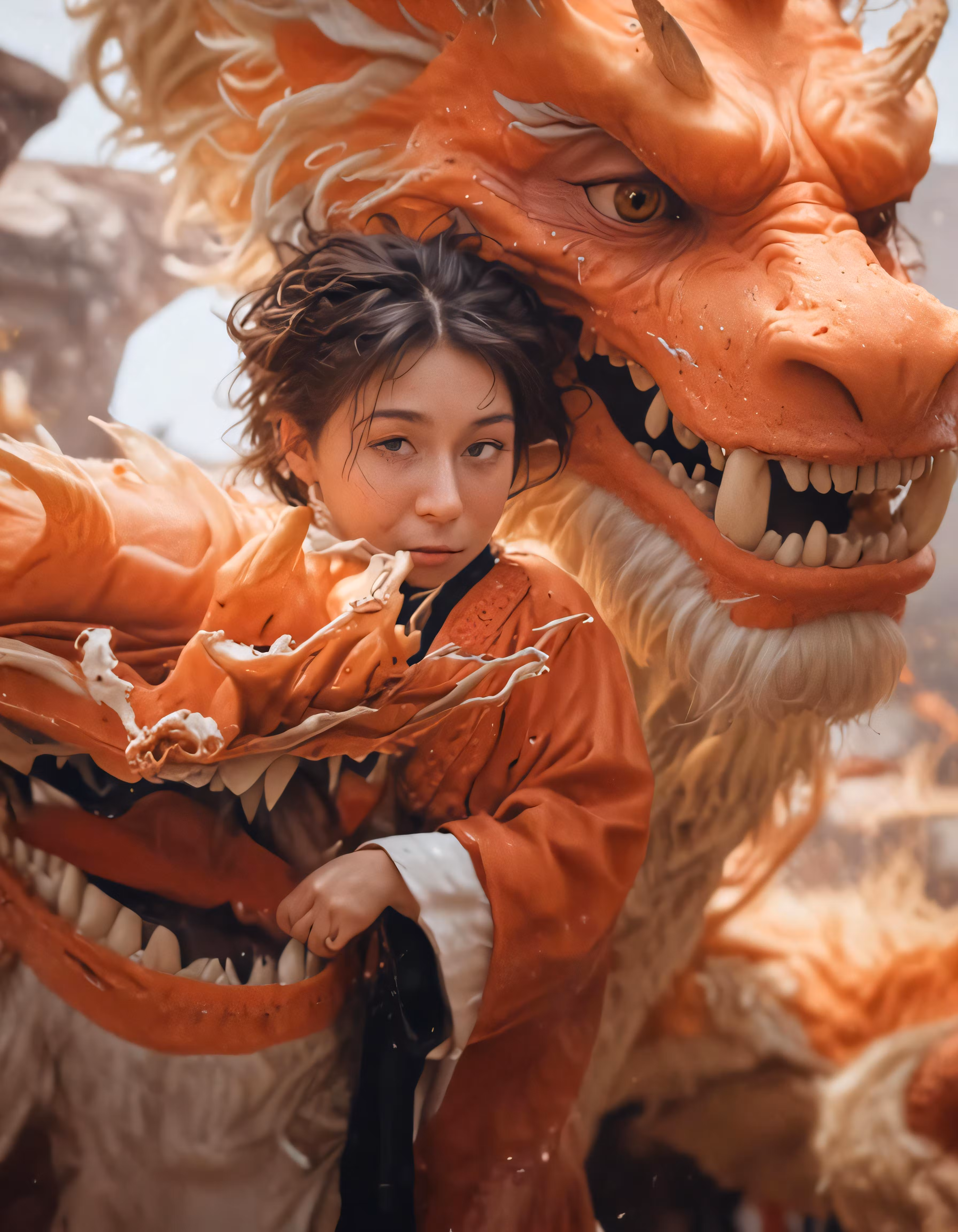 High resolution picture, free to use, a woman is holding a dragon statue