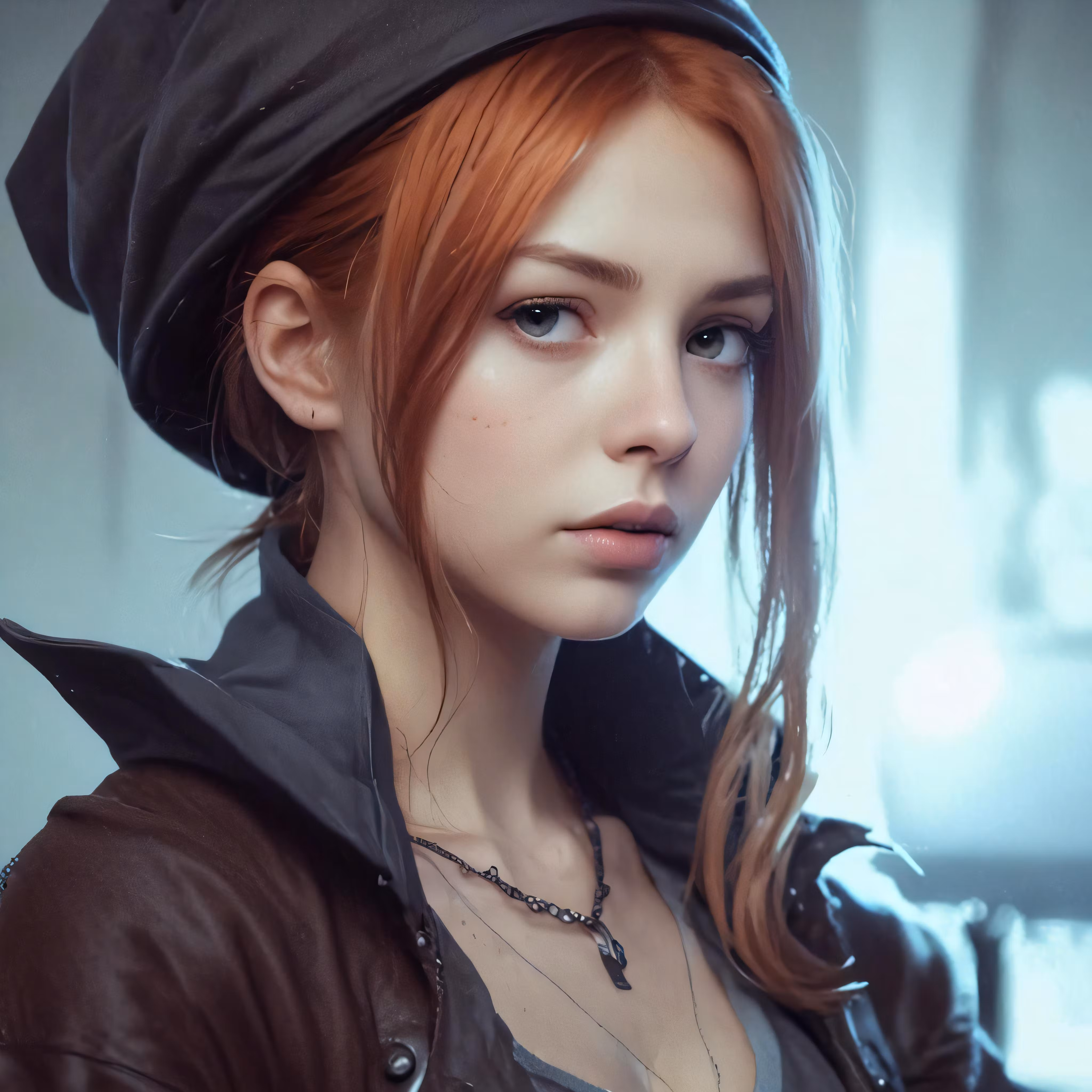 High resolution picture, free to use, a woman is posing for a photo with red hair