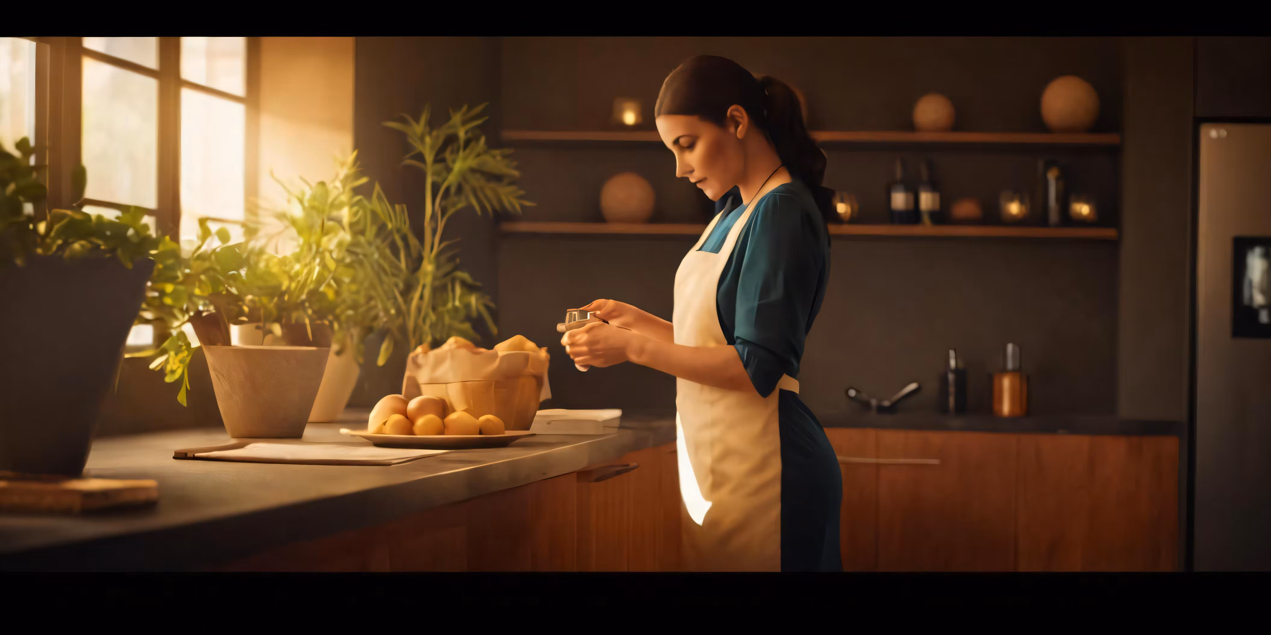 High resolution picture, free to use, a woman is preparing pastries in the kitchen