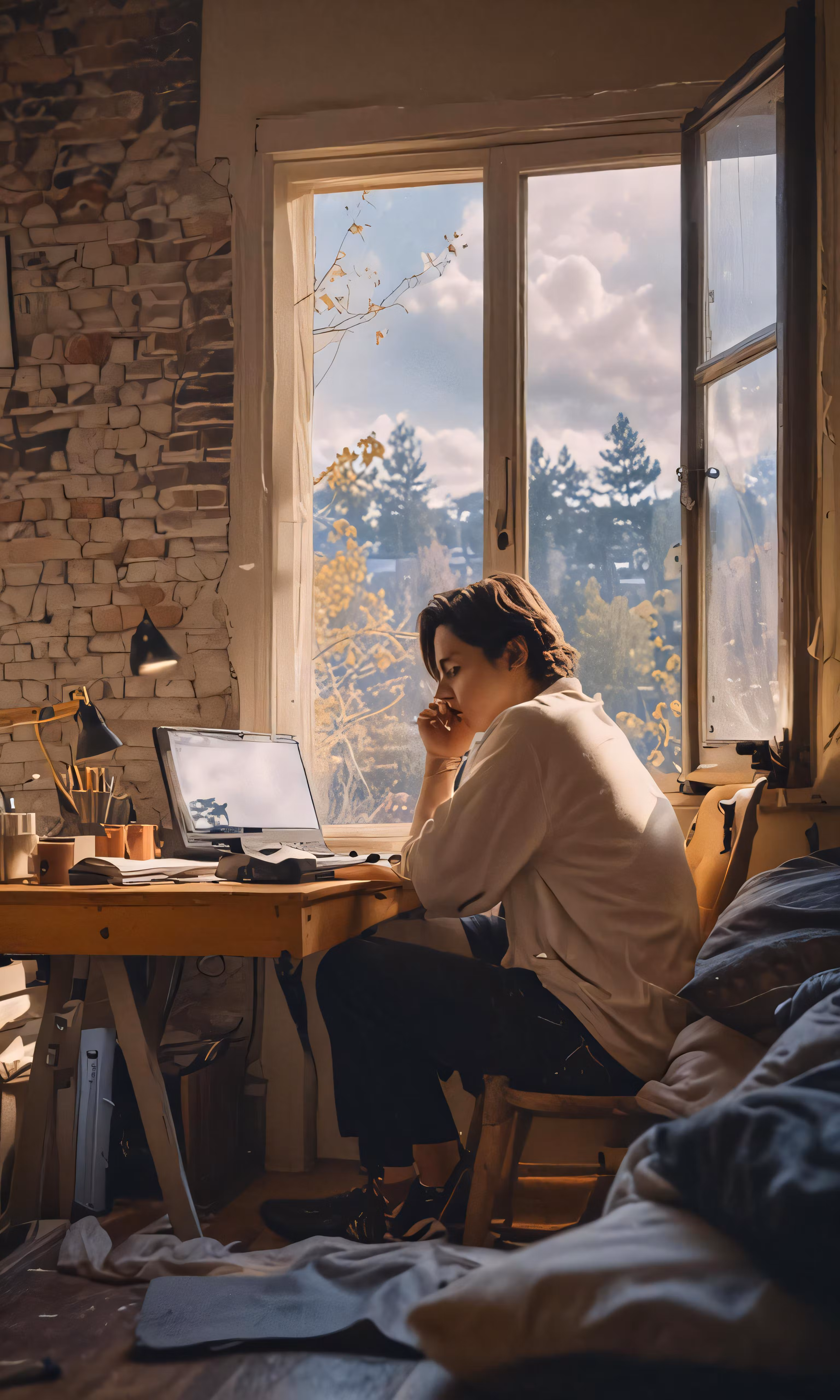 High resolution picture, free to use, a woman is sitting at a desk and working on her laptop