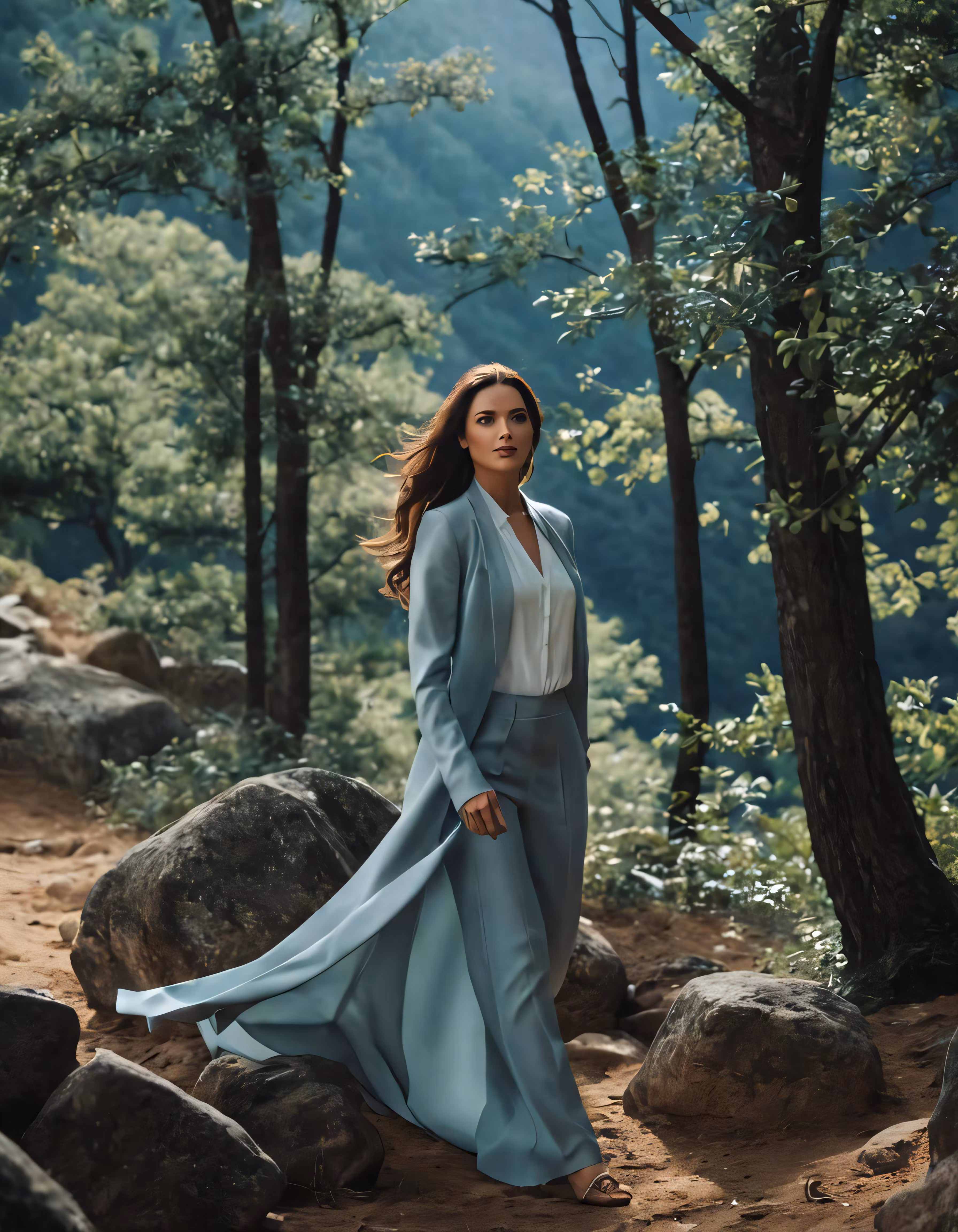 High resolution picture, free to use, a woman is walking through the woods by herself
