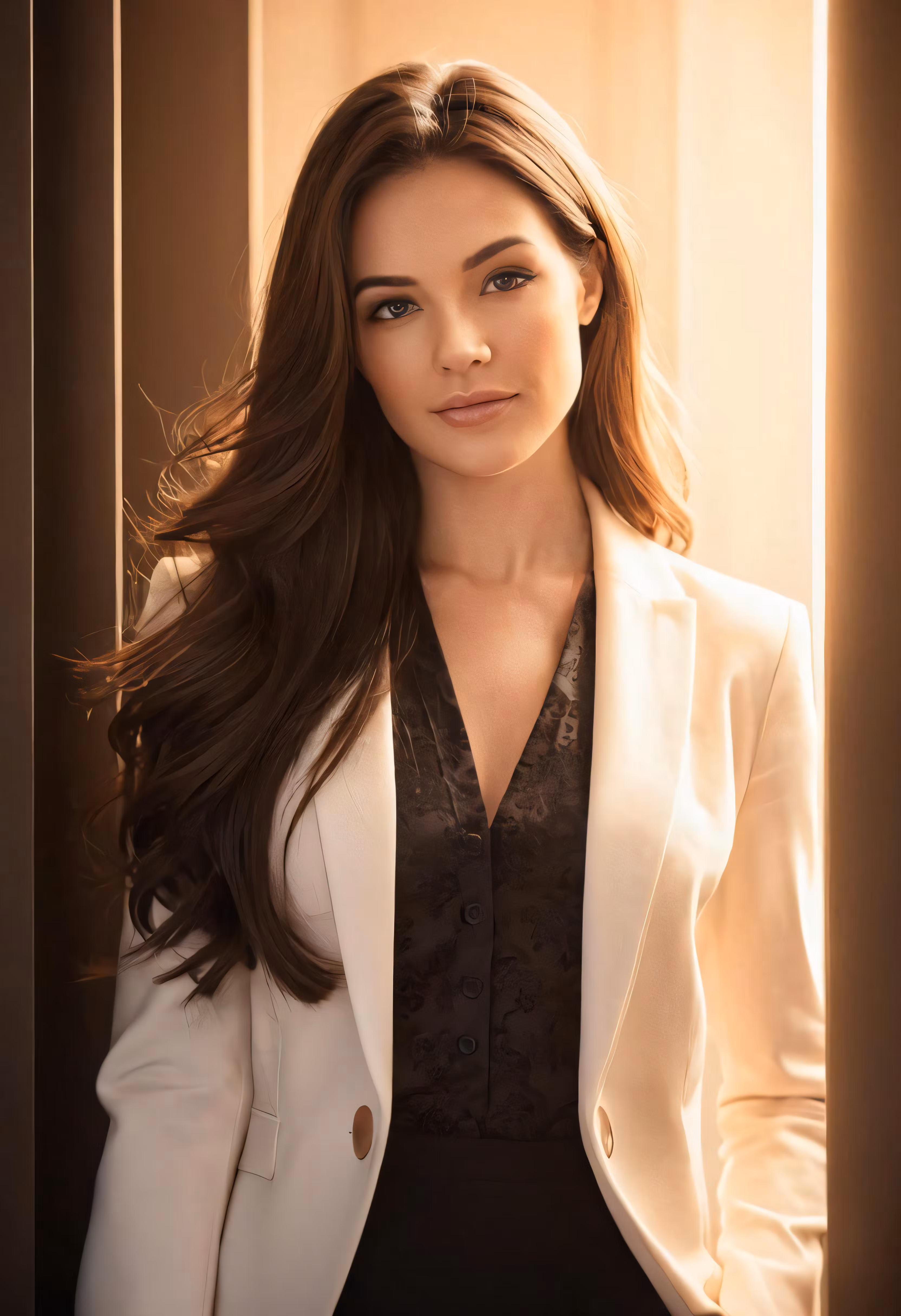 High resolution picture, free to use, a woman is wearing a white jacket and black top