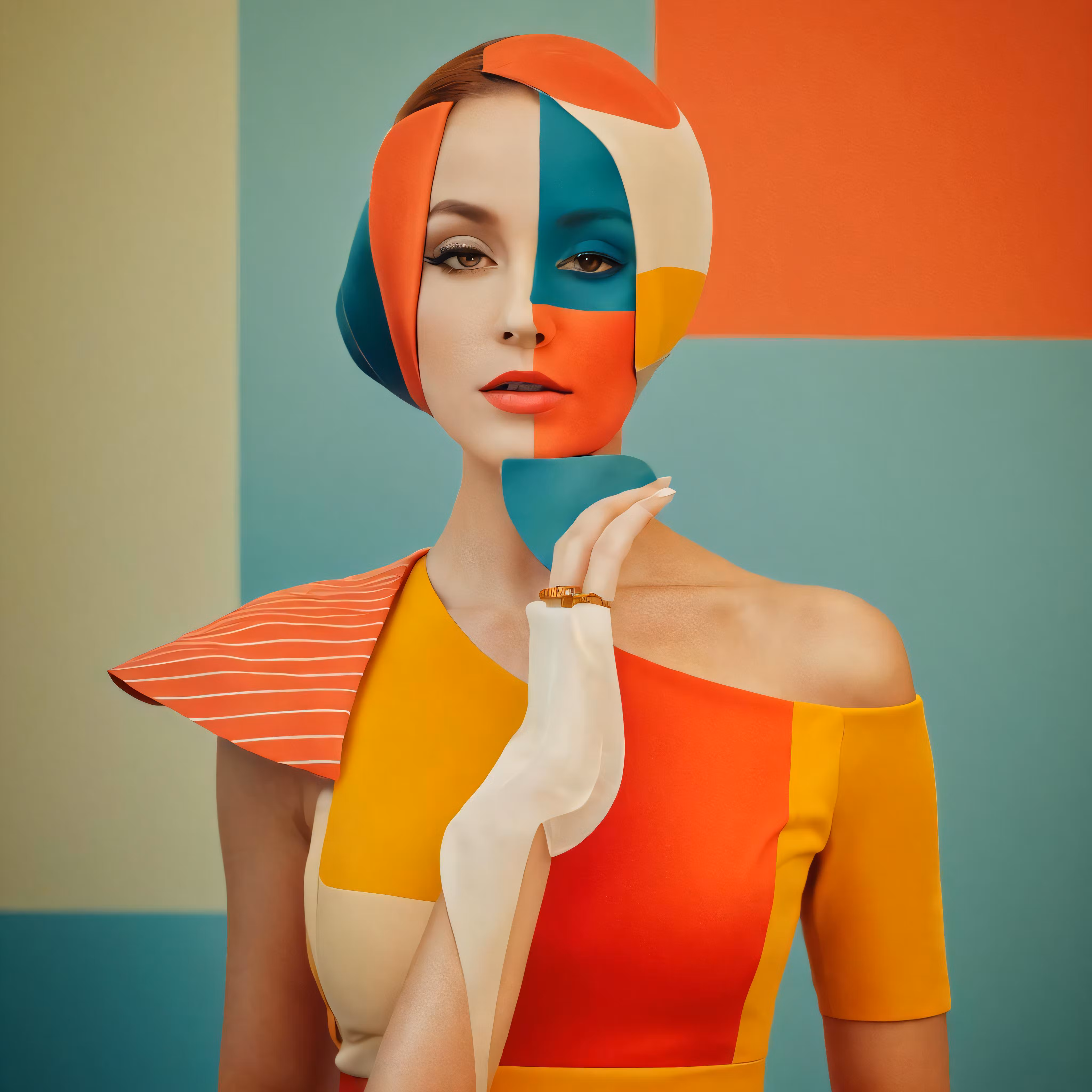 High resolution picture, free to use, a woman is wearing colorful clothes and posing