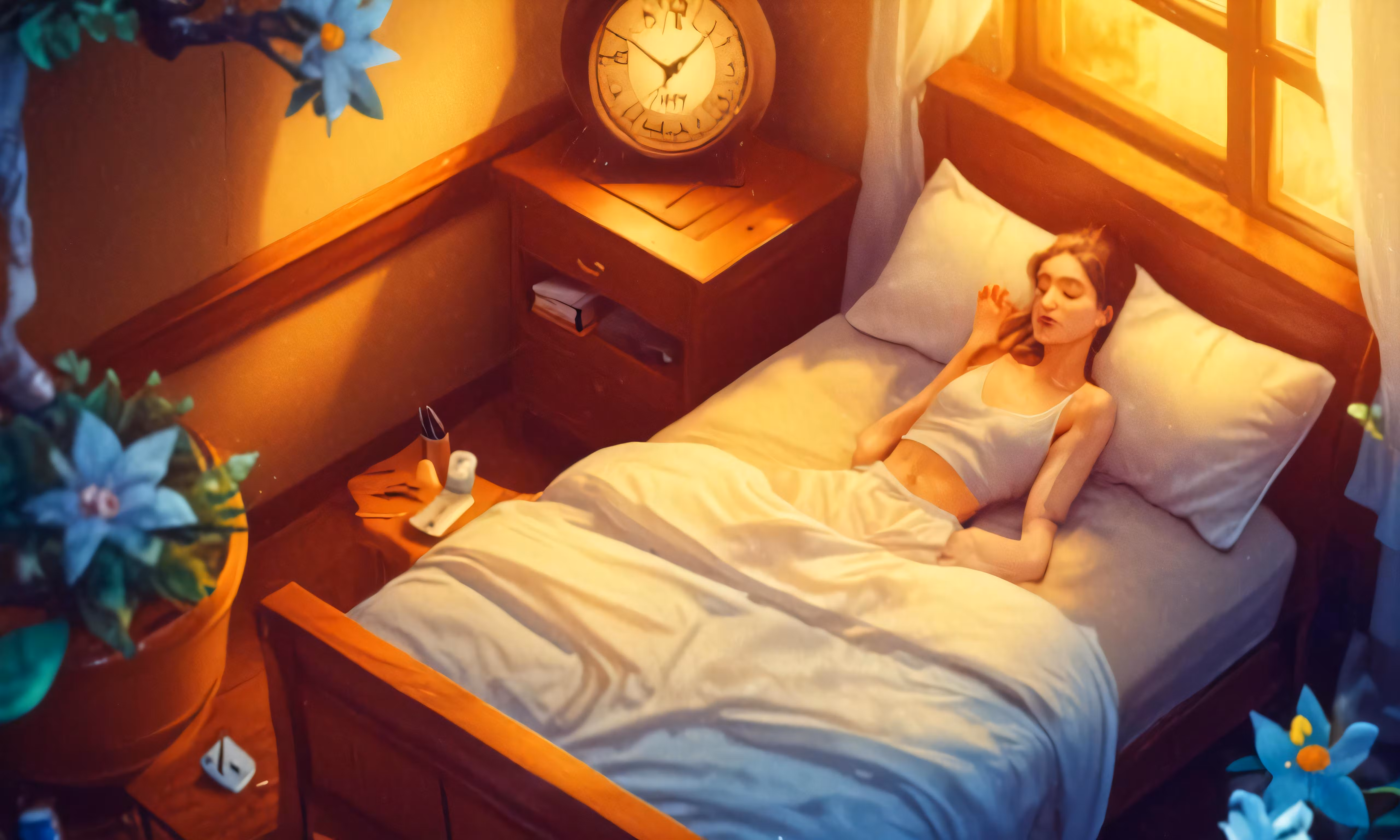 High resolution picture, free to use, a woman lies on her bed in the bedroom