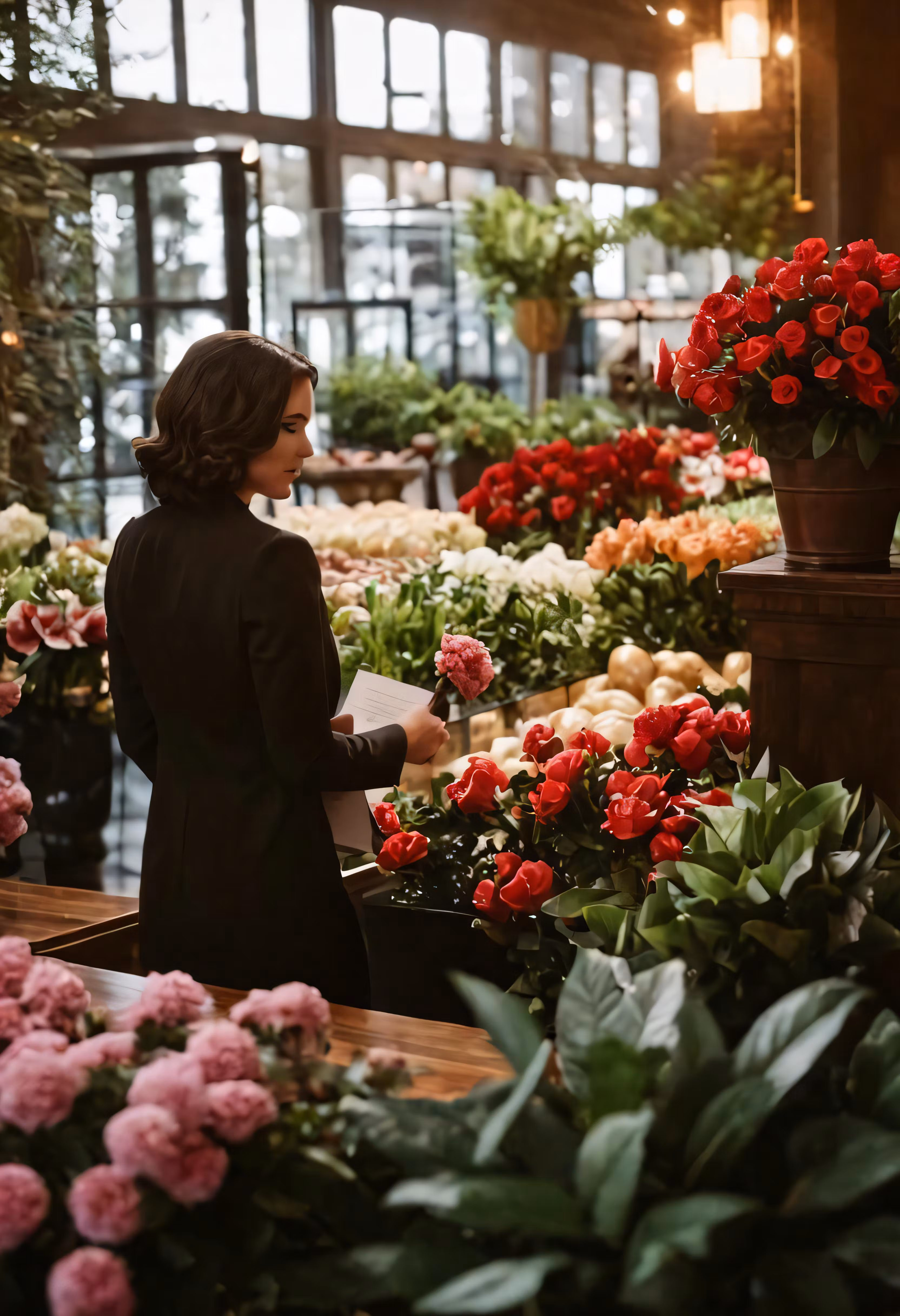 High resolution picture, free to use, a woman looking at flowers in a large garden center