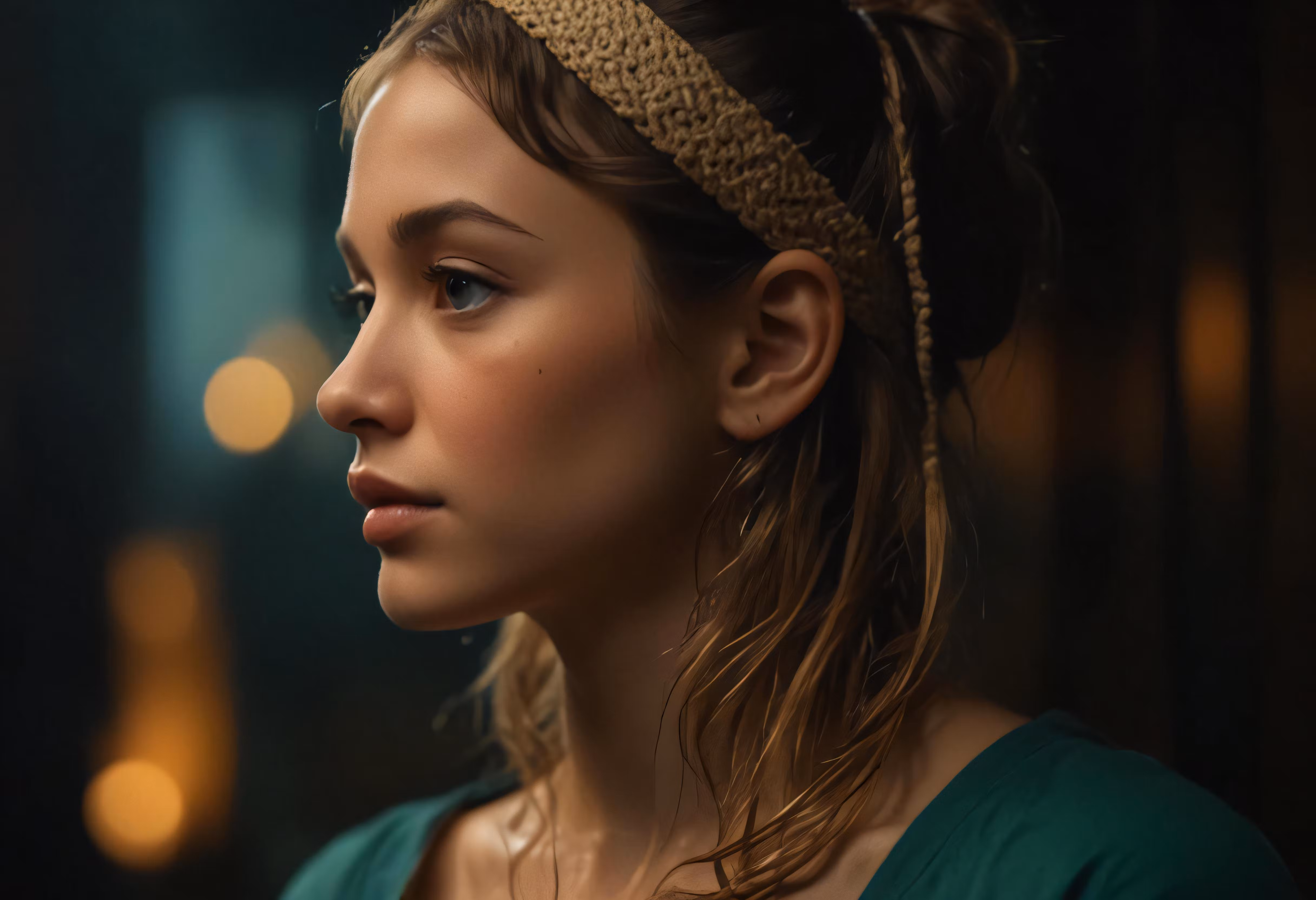 High resolution picture, free to use, a woman looking away while wearing an elegant headband
