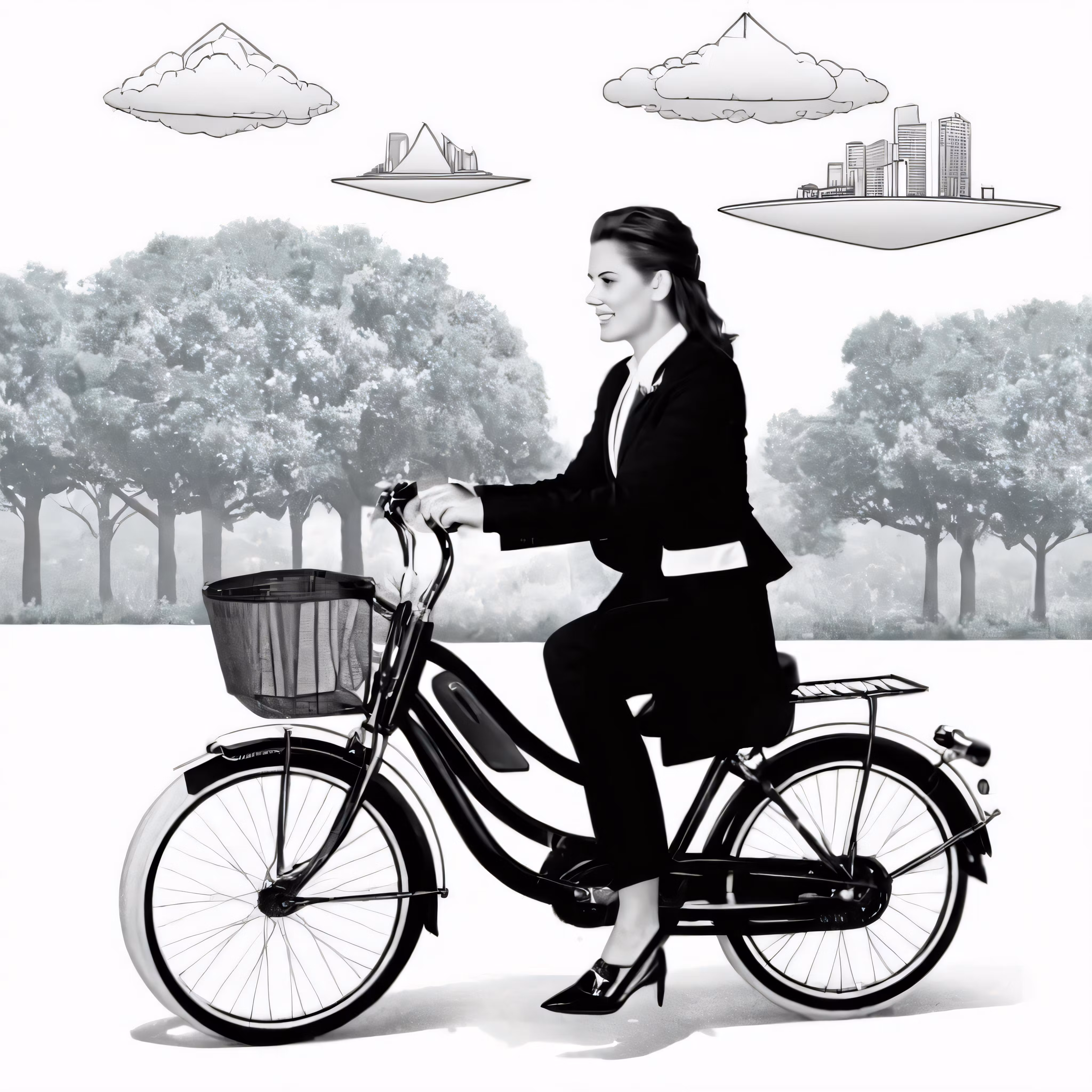 High resolution picture, free to use, a woman on a bicycle in a city