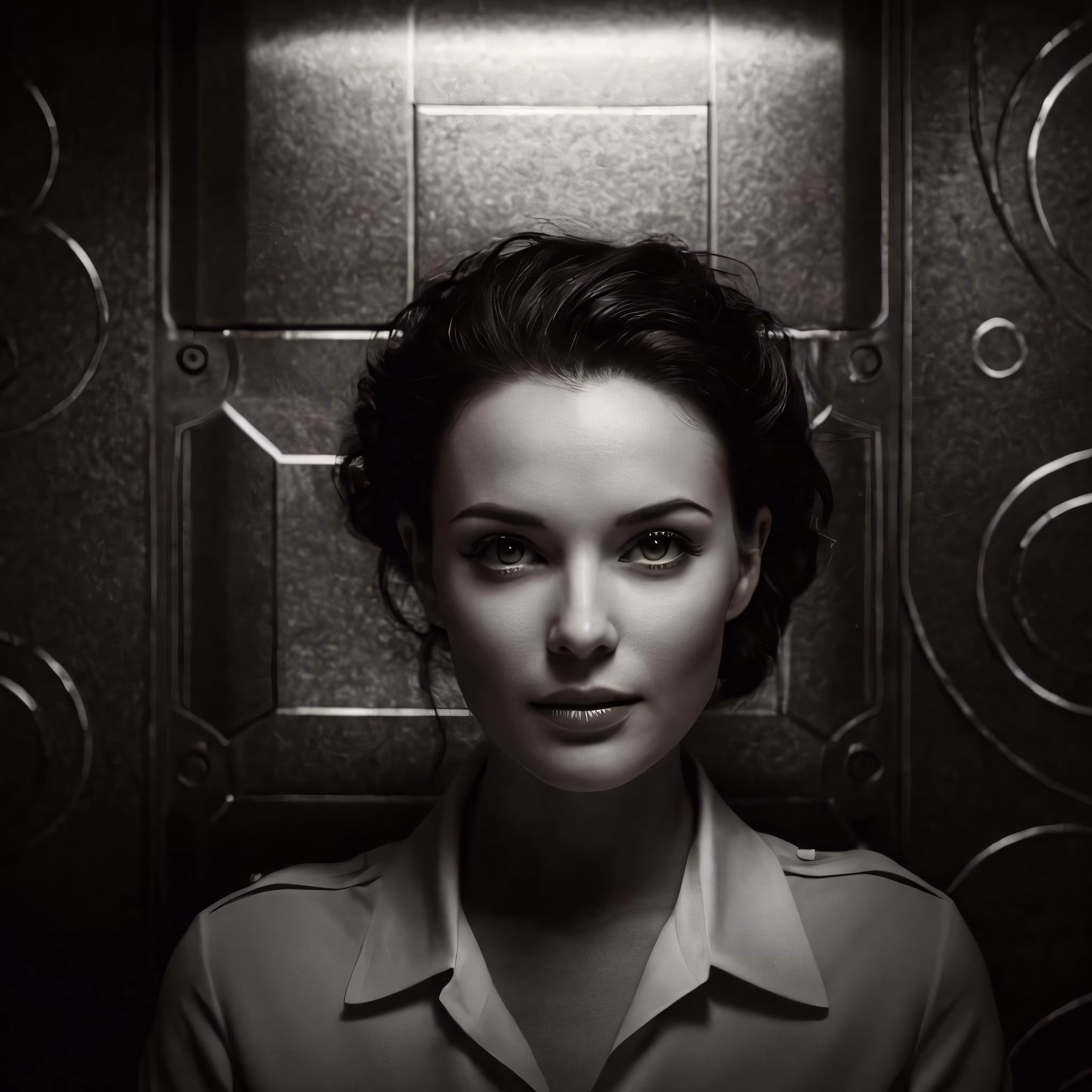 High resolution picture, free to use, a woman posing for a photo in front of a wall