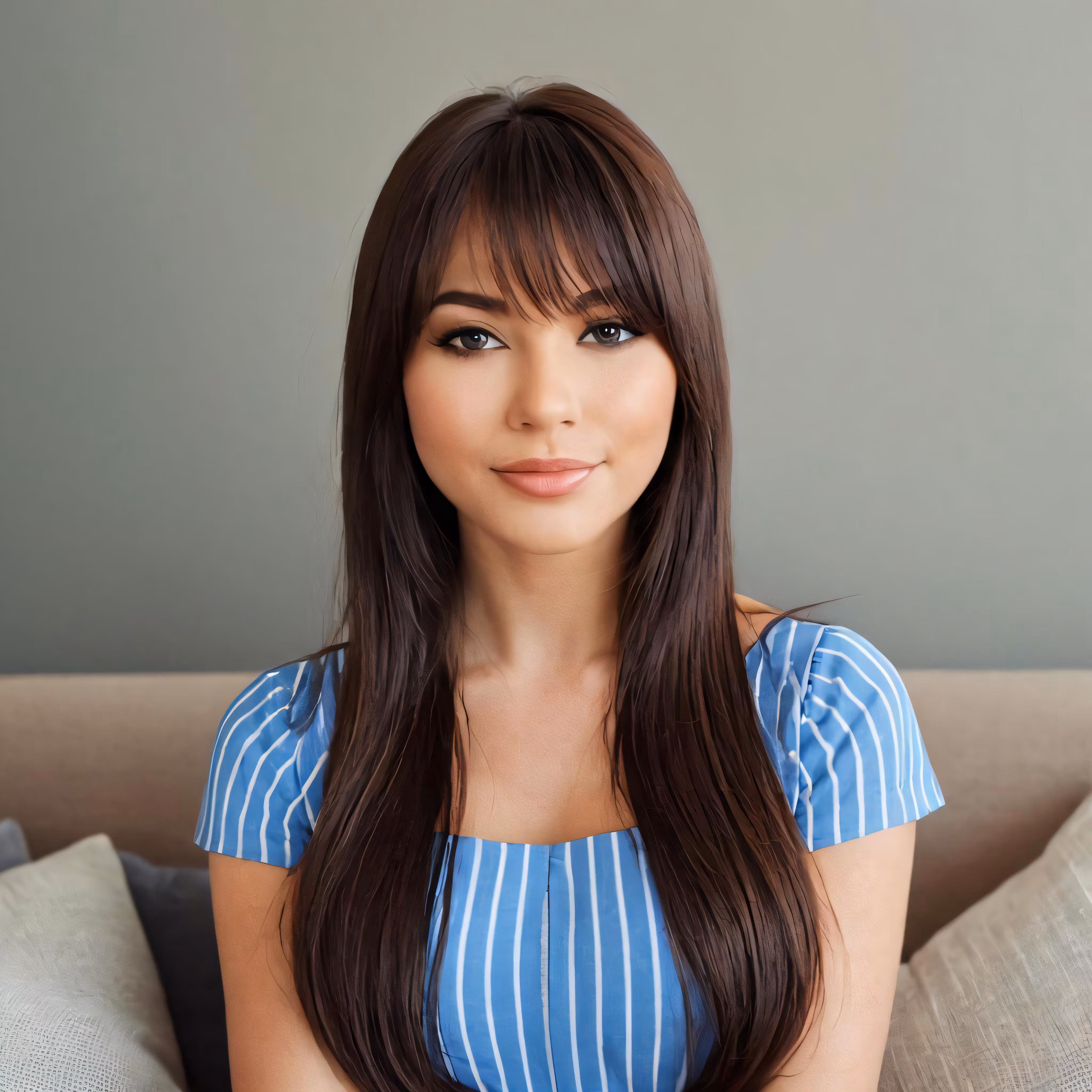 High resolution picture, free to use, a woman posing for the camera with long brown hair
