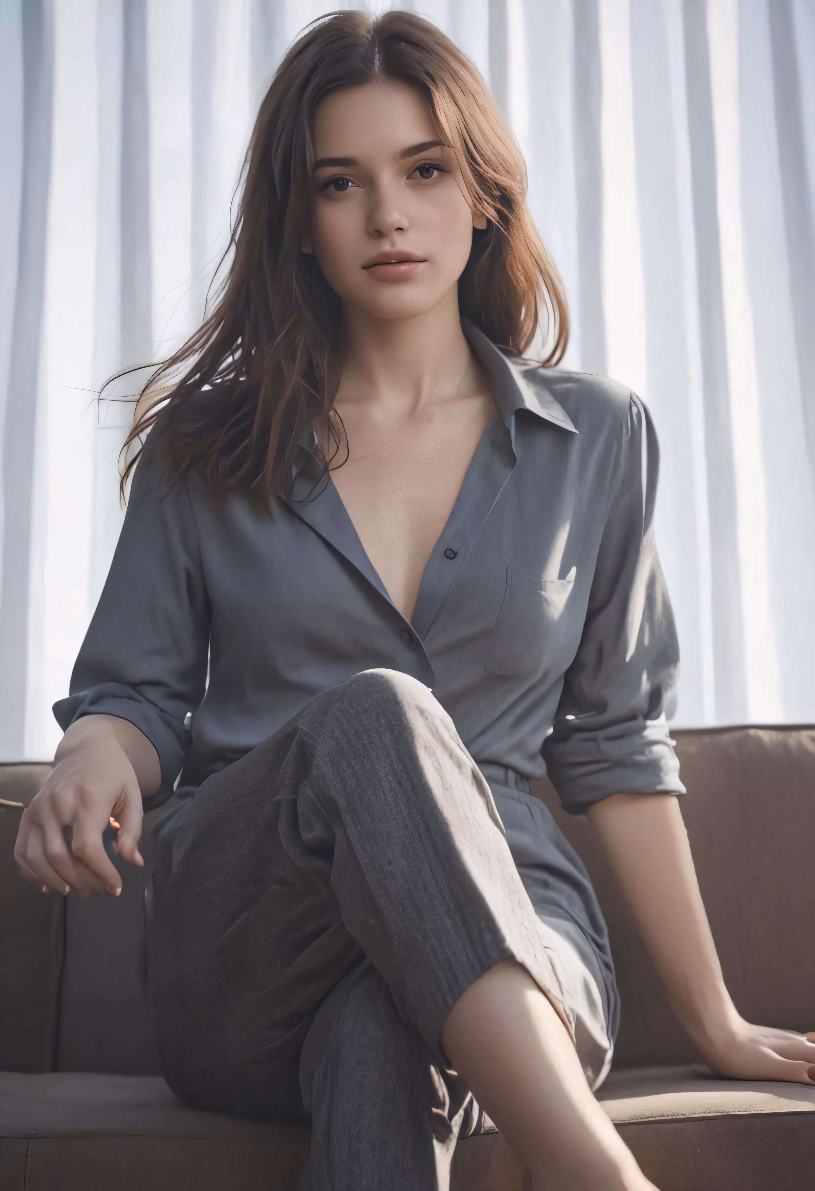 High resolution picture, free to use, a woman posing on a couch with her foot up