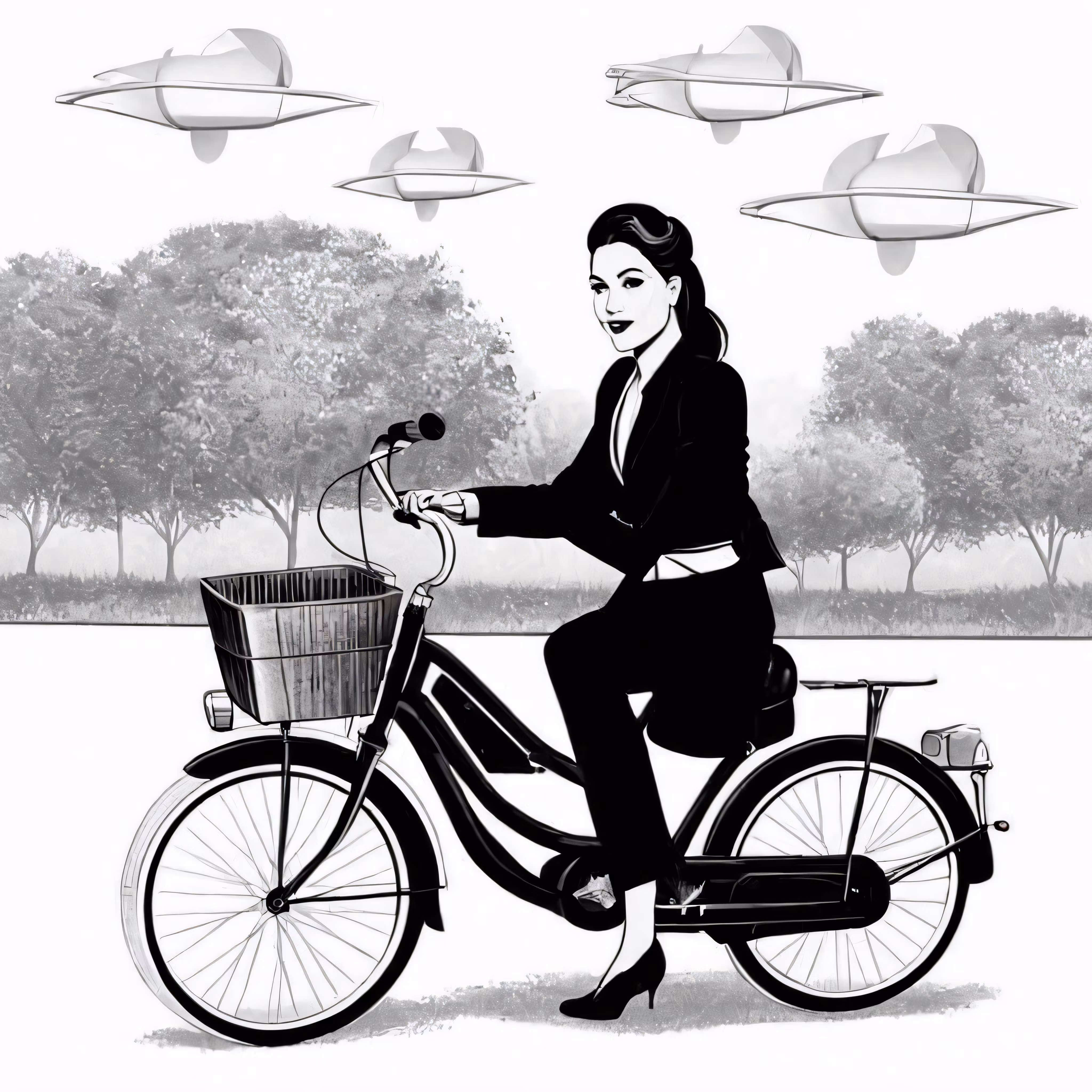 High resolution picture, free to use, a woman riding on a bicycle in a park