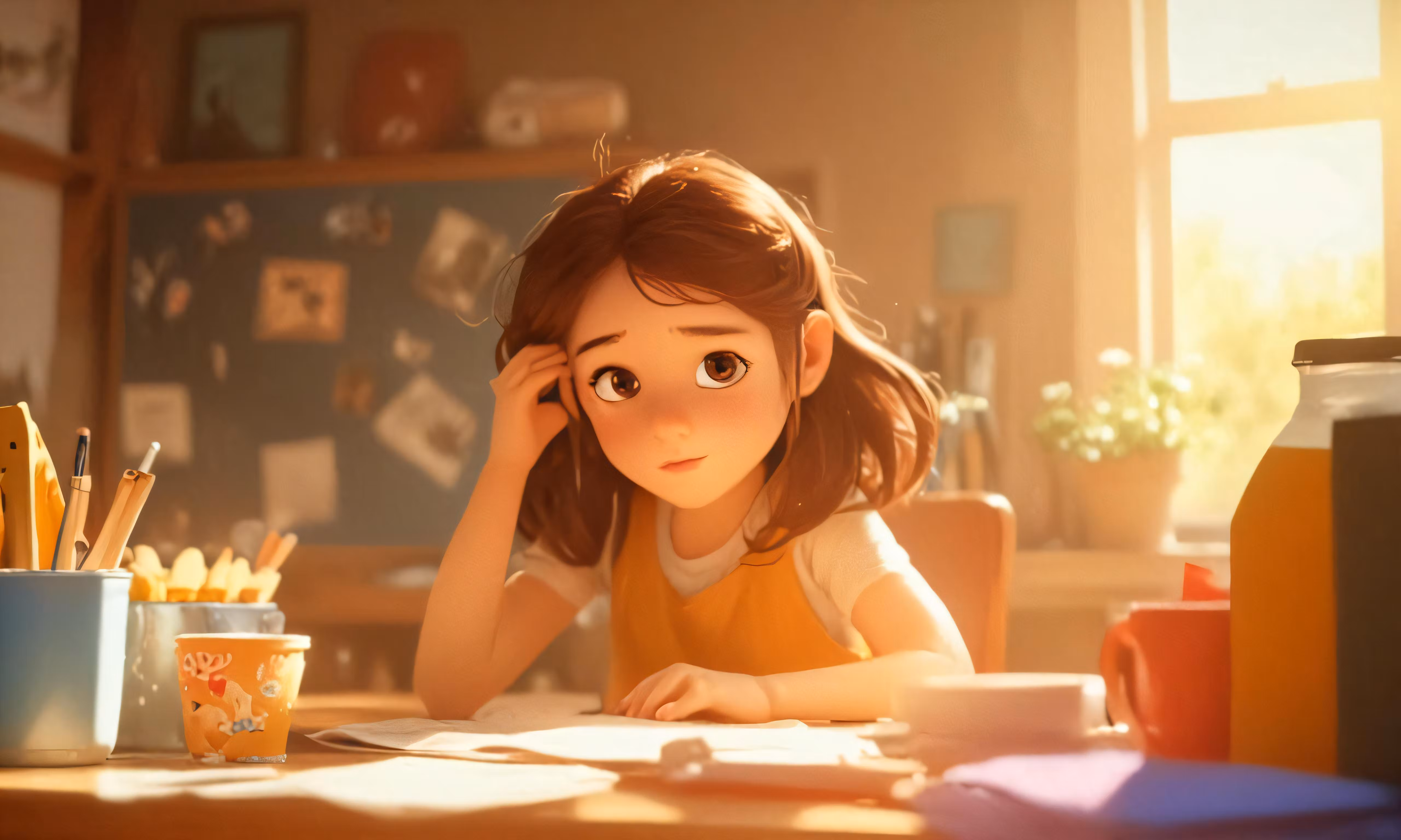 High resolution picture, free to use, a woman sitting at a table with a book, pencils and books in her hands