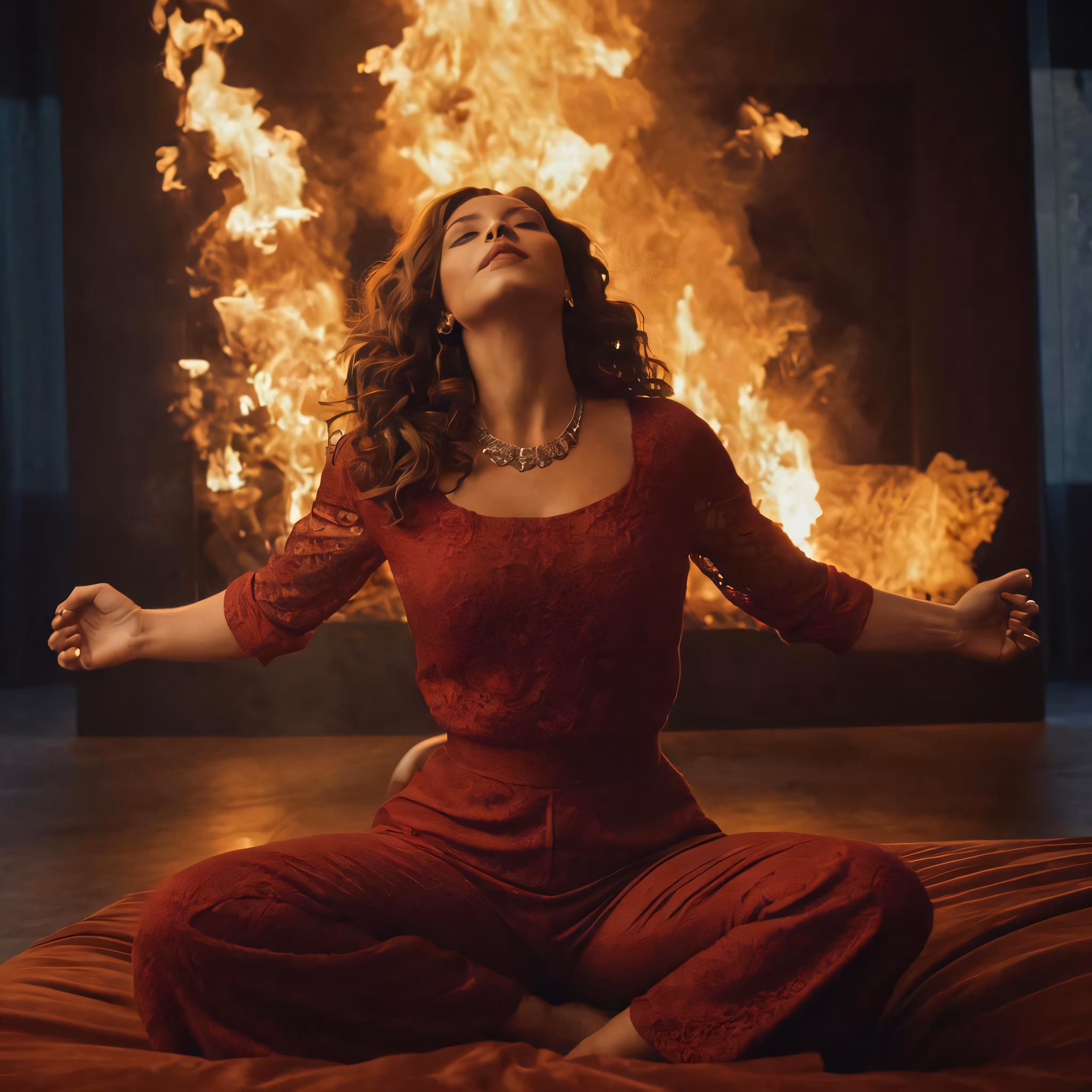 High resolution picture, free to use, a woman sitting in a red yoga position on the floor