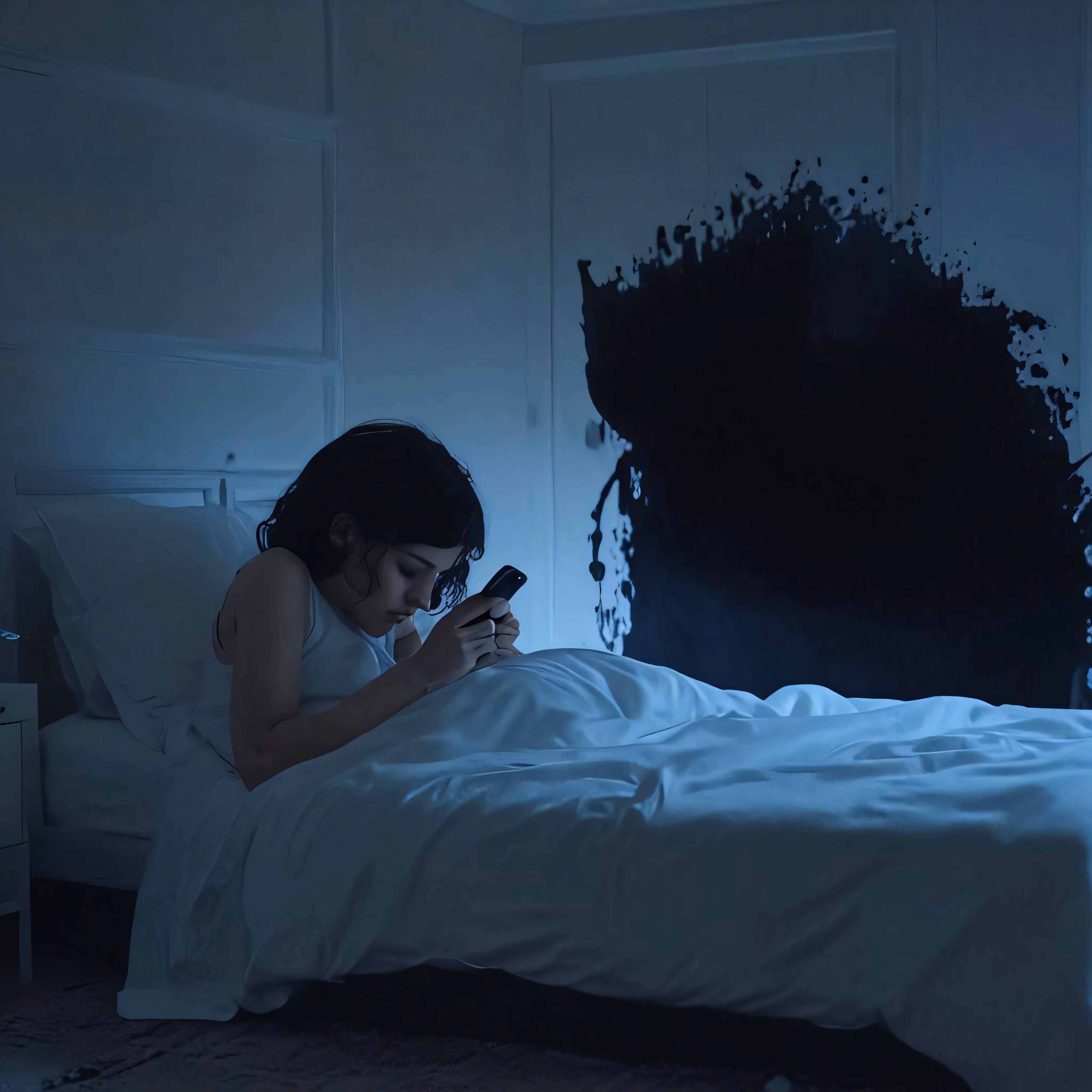 High resolution picture, free to use, a woman sitting in bed with a cell phone