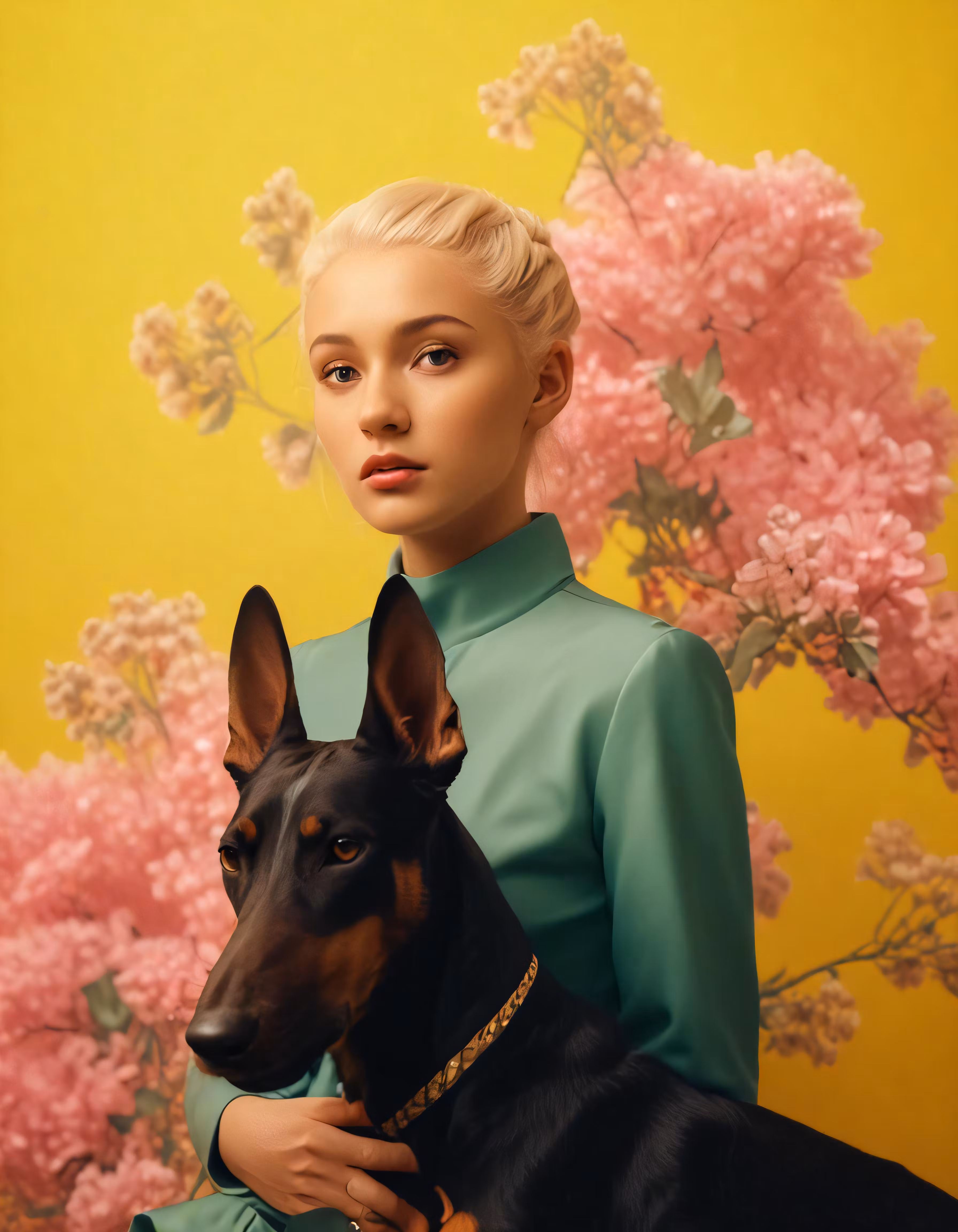 High resolution picture, free to use, a woman sitting next to a dog on a couch