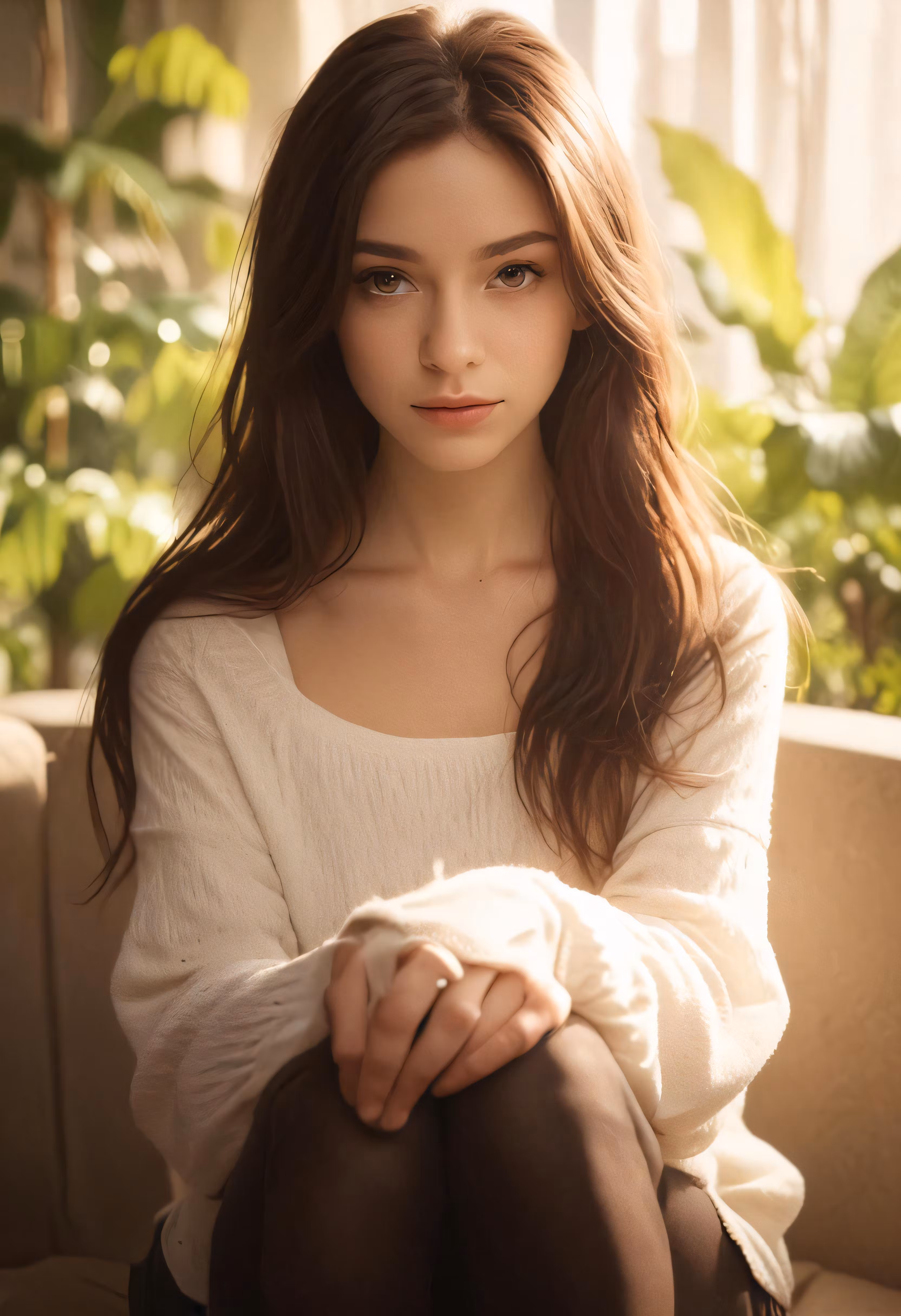 High resolution picture, free to use, a woman sitting on a couch wearing tights and stockings