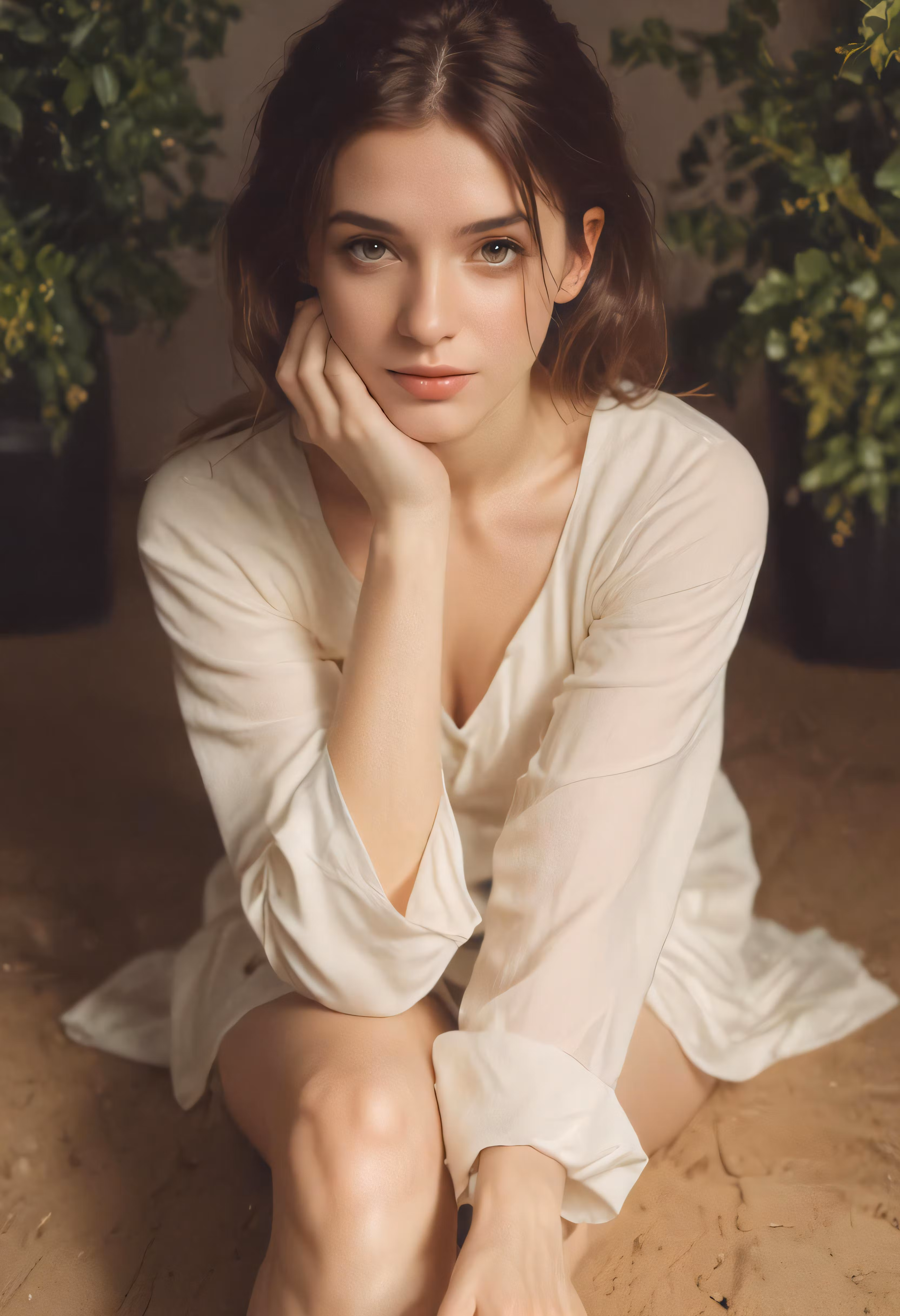High resolution picture, free to use, a woman sitting on the floor in white clothing