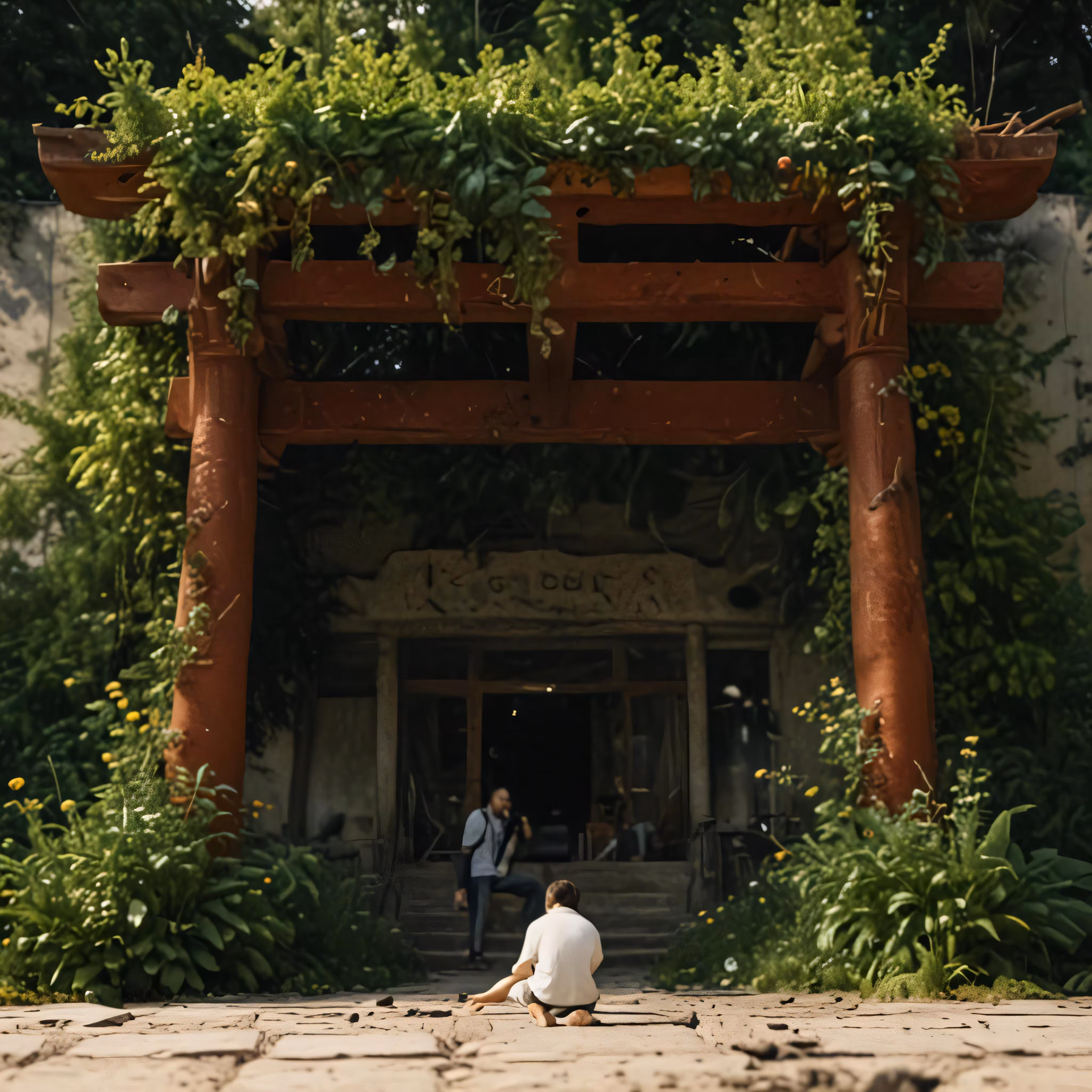 High resolution picture, free to use, a woman sitting on the ground near a gate