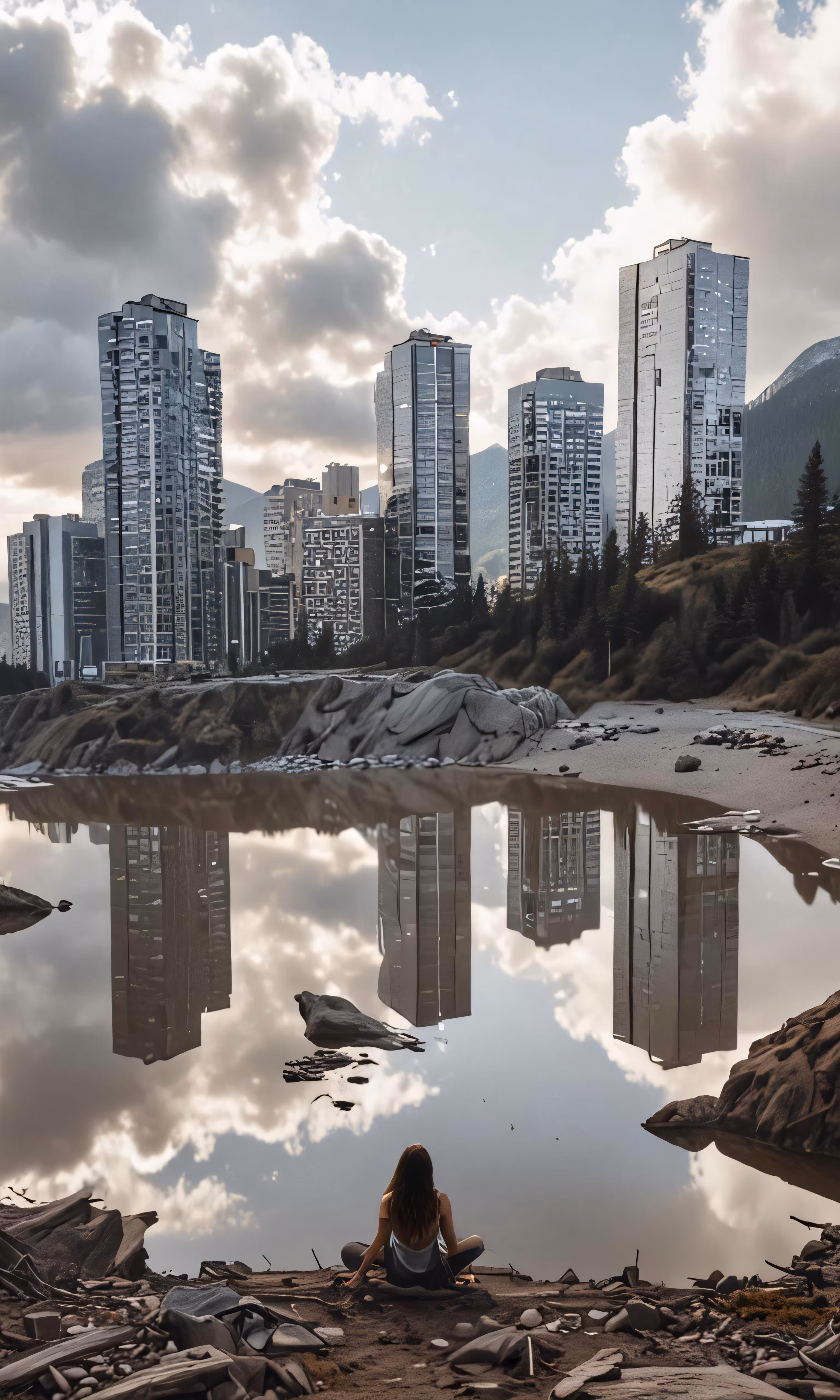 High resolution picture, free to use, a woman sitting on the shore of a body of water