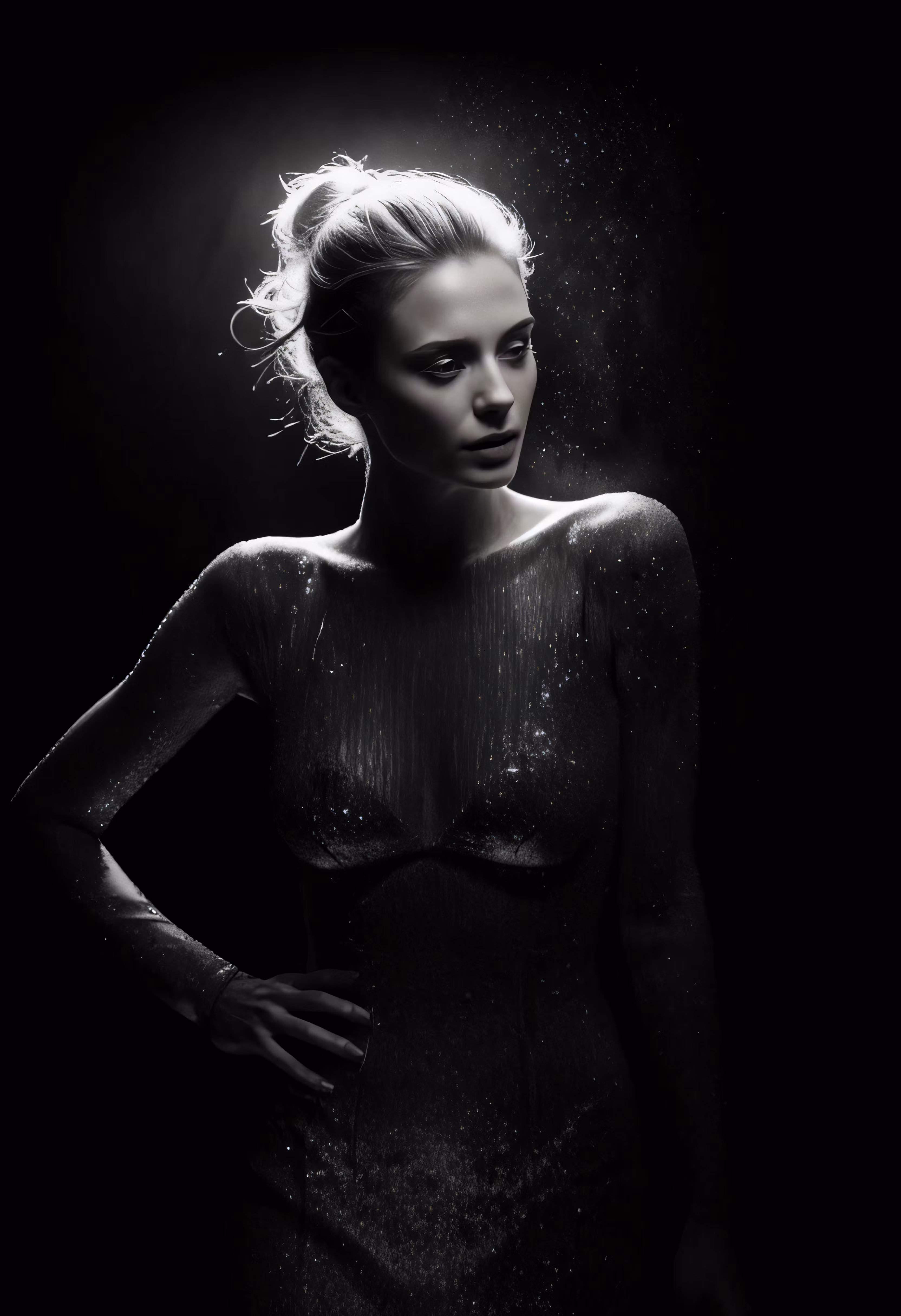 High resolution picture, free to use, a woman standing in the dark and looking back