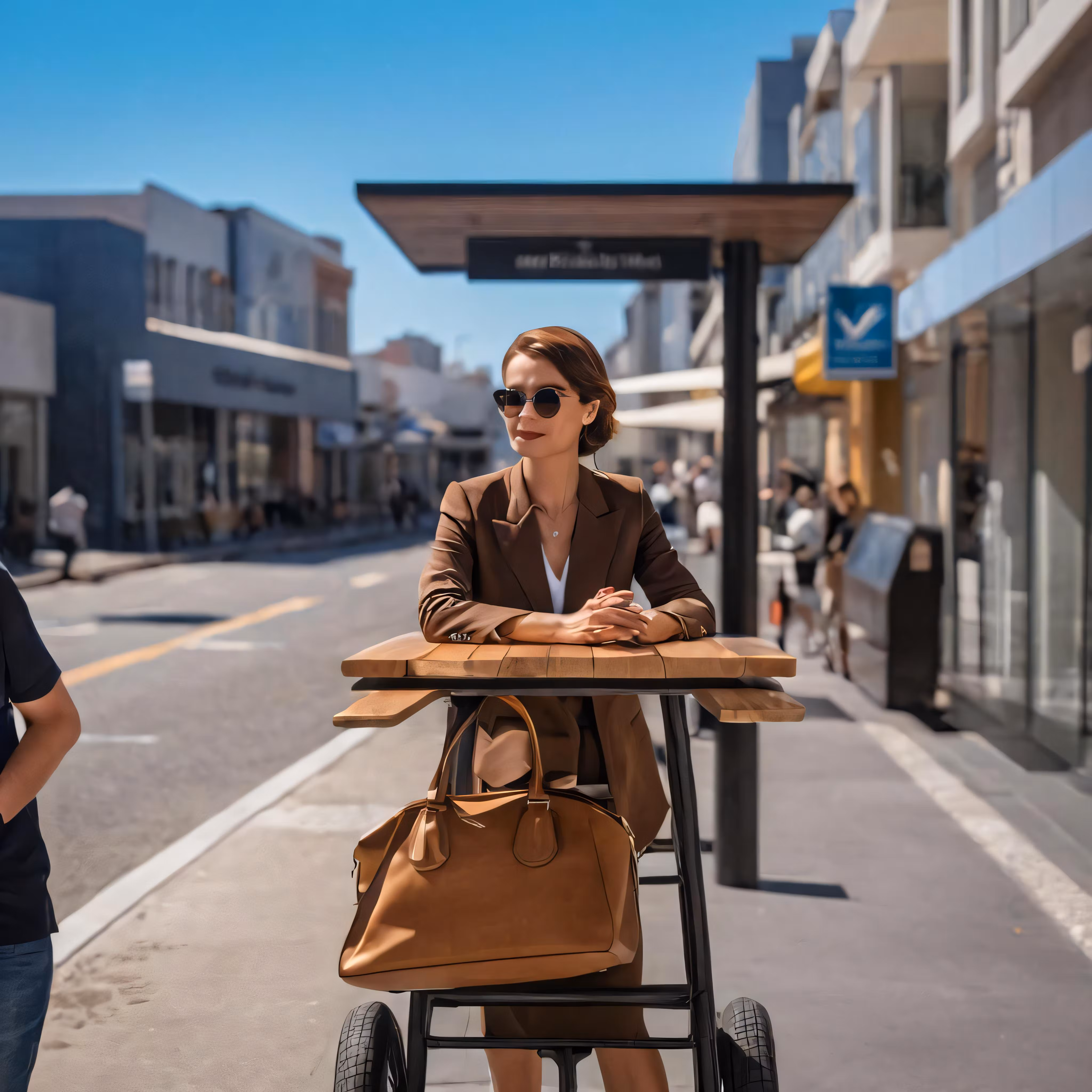 High resolution picture, free to use, a woman standing next to a luggage cart