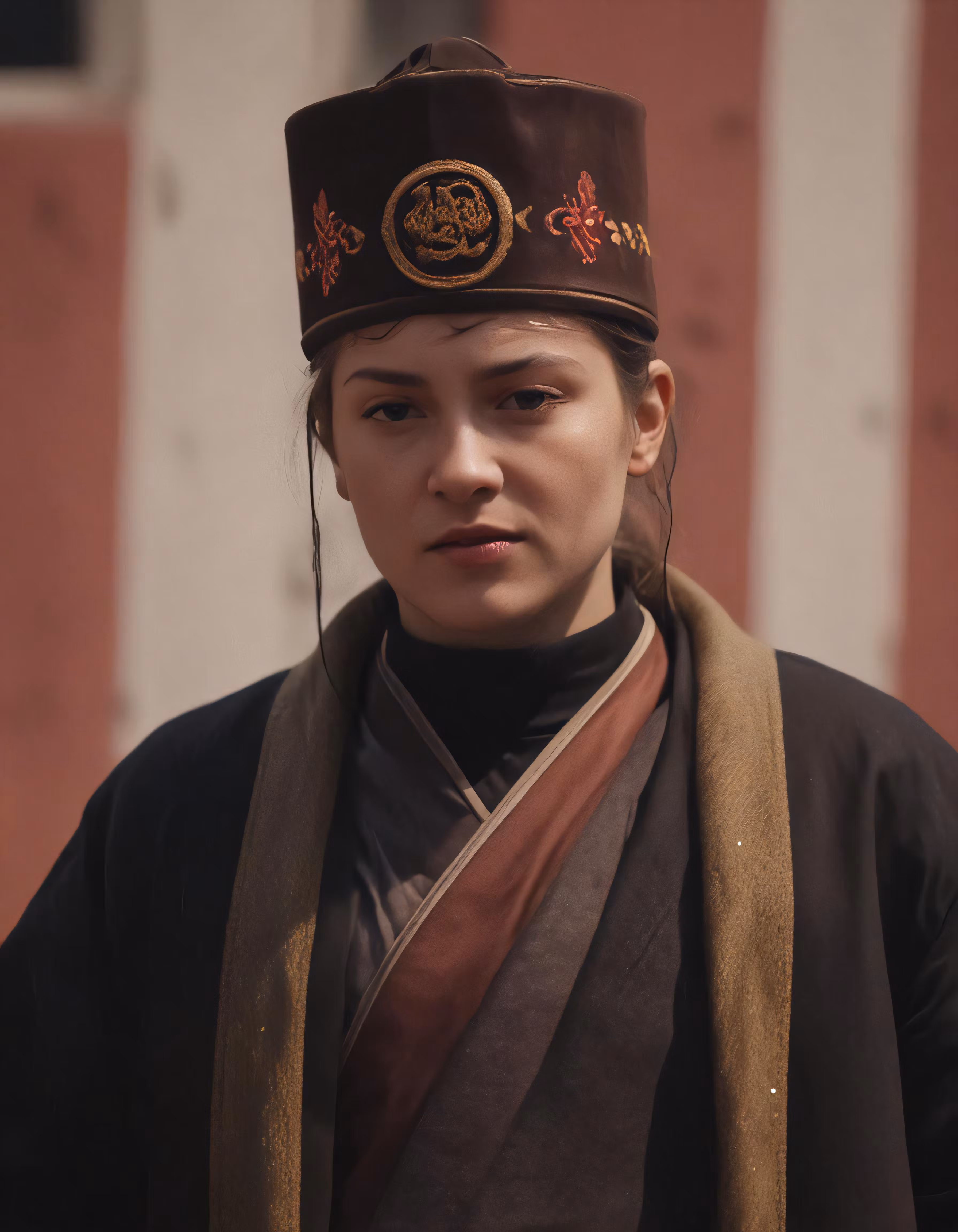 High resolution picture, free to use, a woman wearing a brown and orange hat