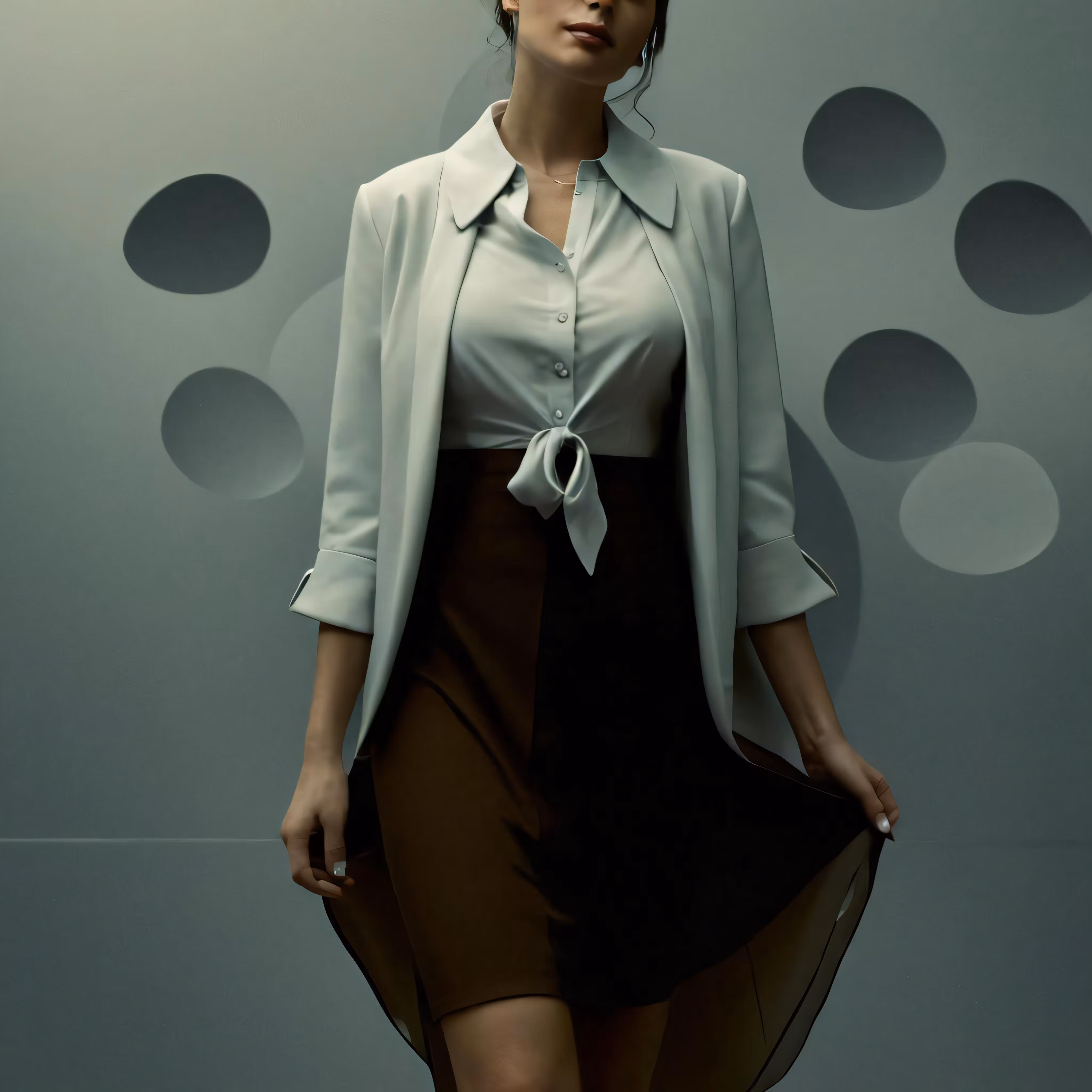 High resolution picture, free to use, a woman wearing a dress and blazer