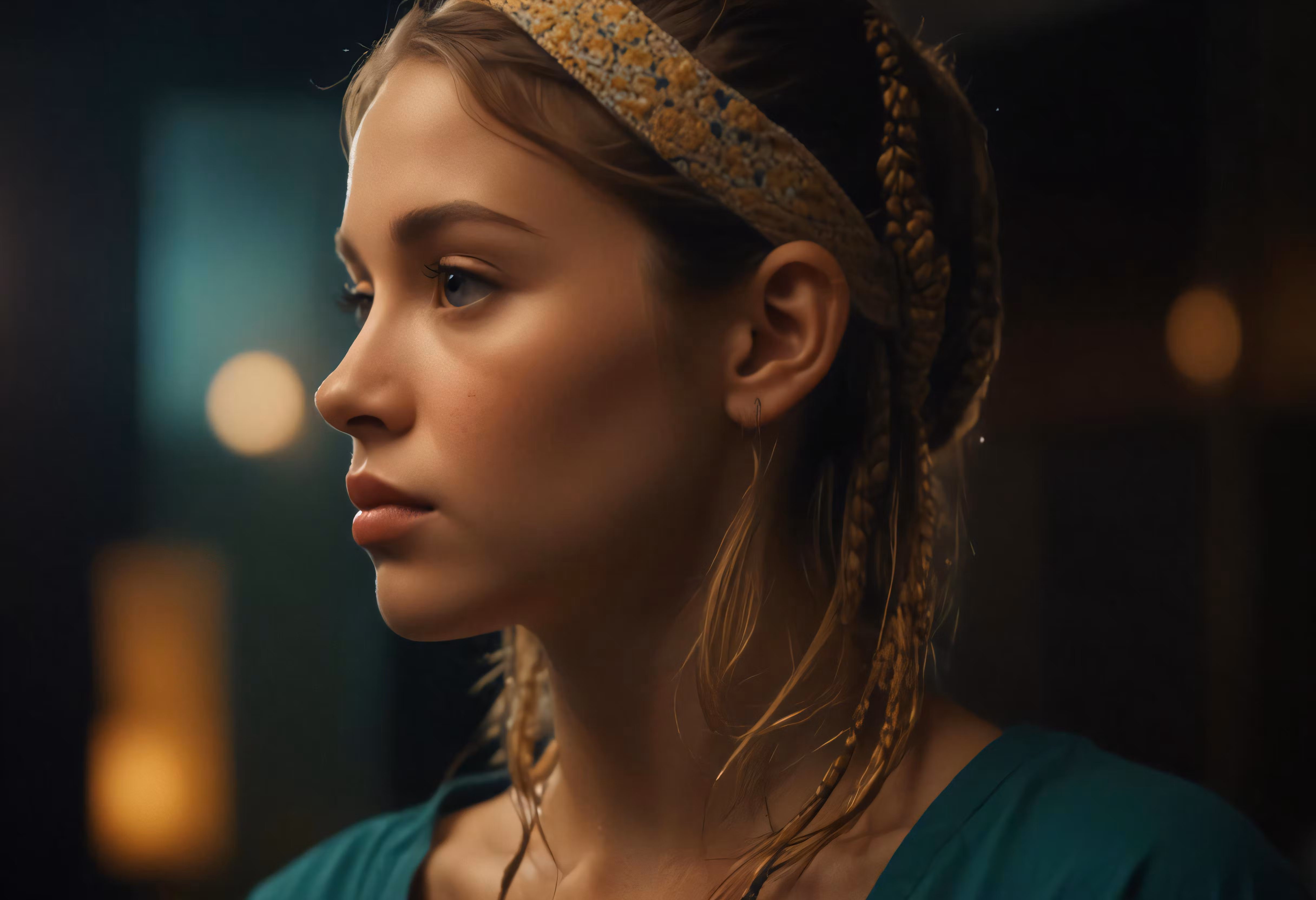 High resolution picture, free to use, a woman wearing a green shirt with a headband on
