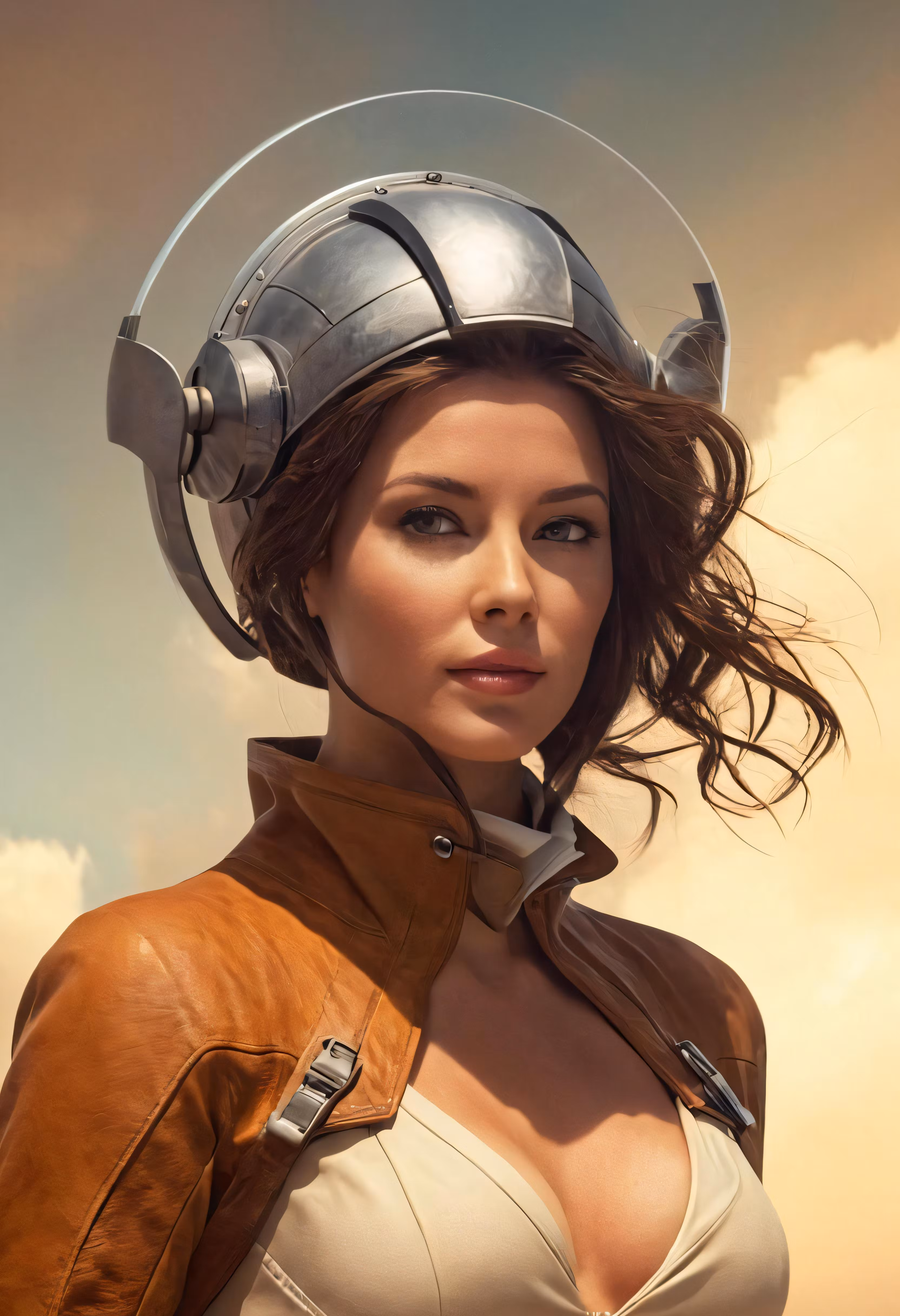 High resolution picture, free to use, a woman wearing a helmet with a metal body