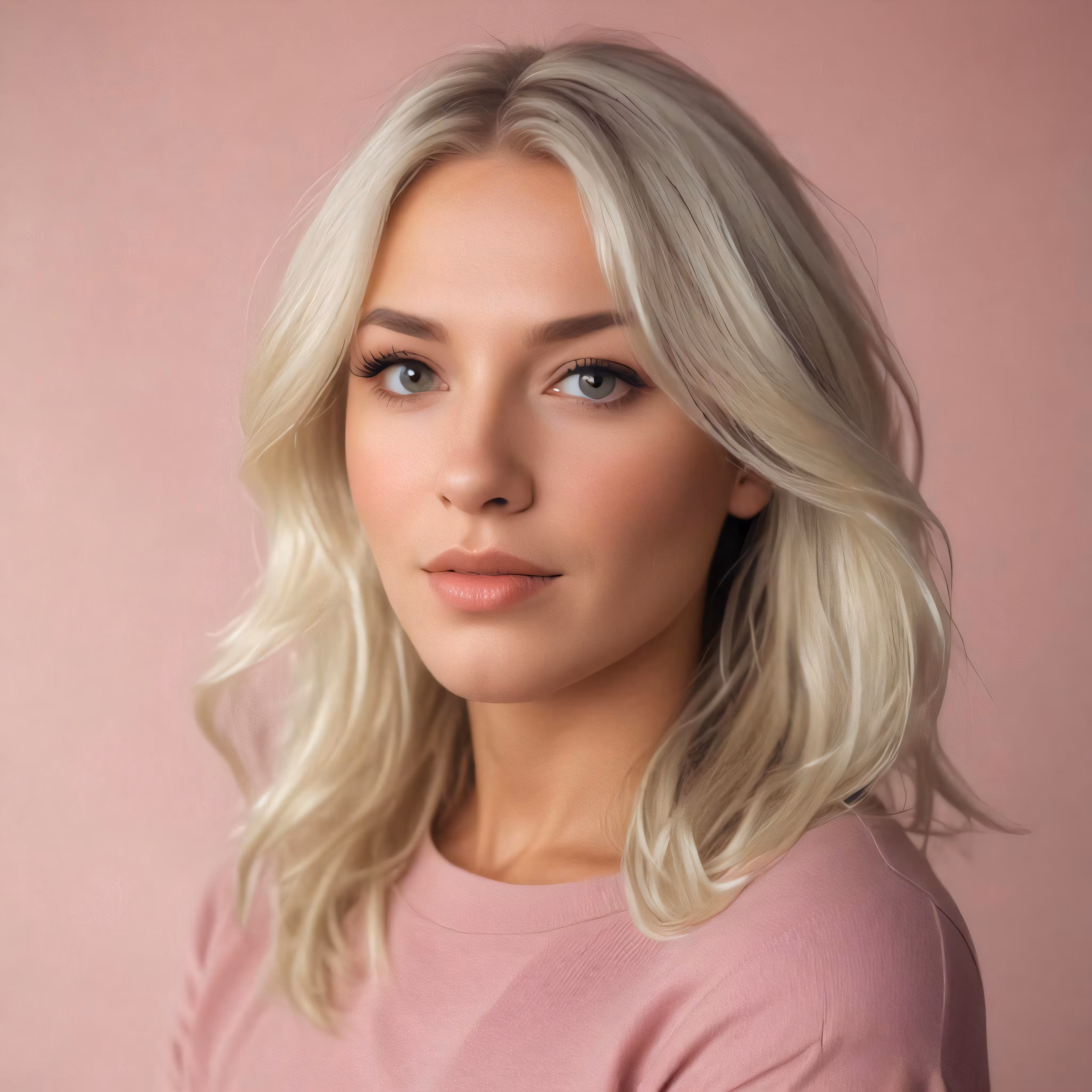 High resolution picture, free to use, a woman wearing a pink shirt with her long blond hair