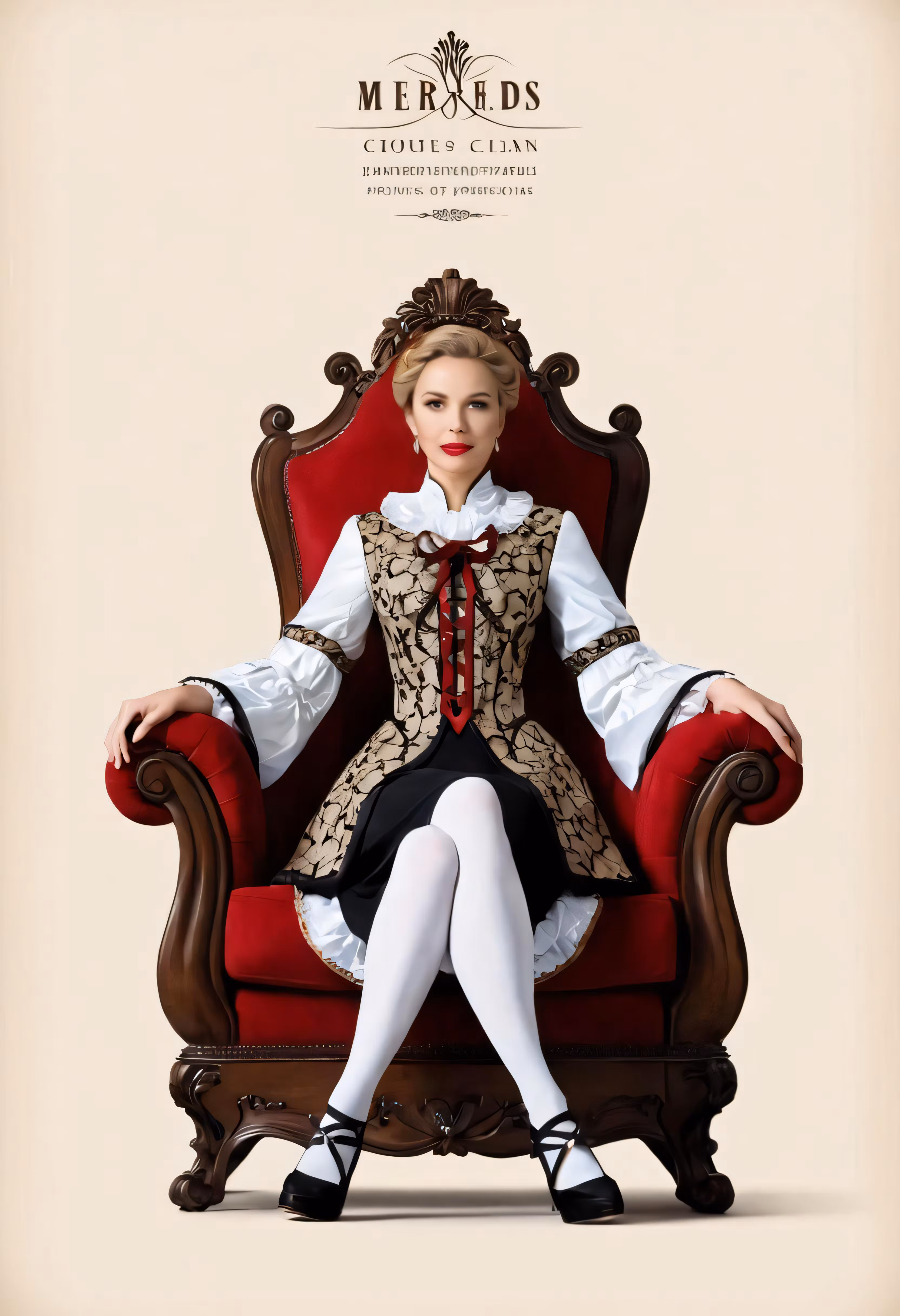 High resolution picture, free to use, a woman wearing a red and white outfit sitting on a red chair
