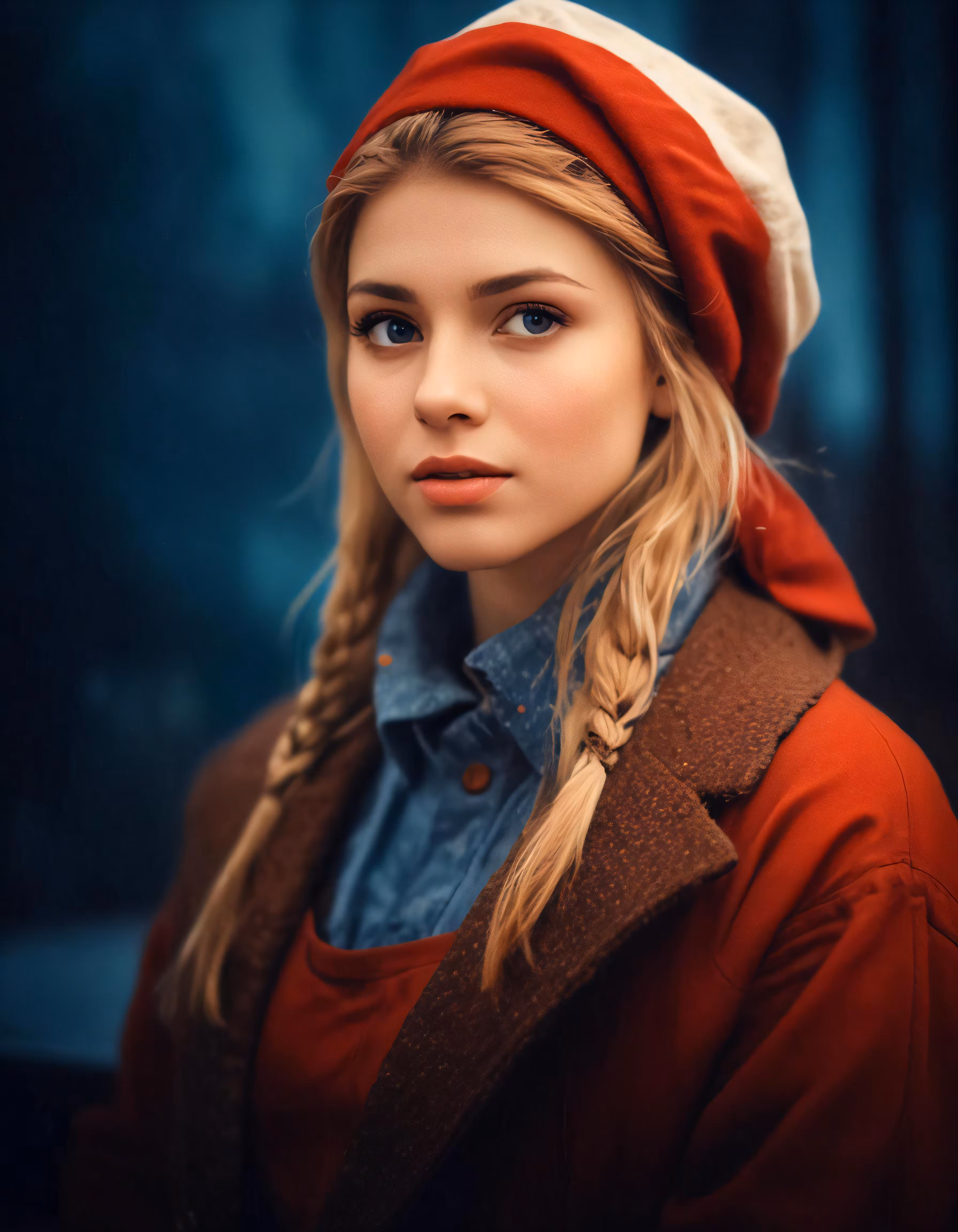 High resolution picture, free to use, a woman wearing a red hat is posing for the camera