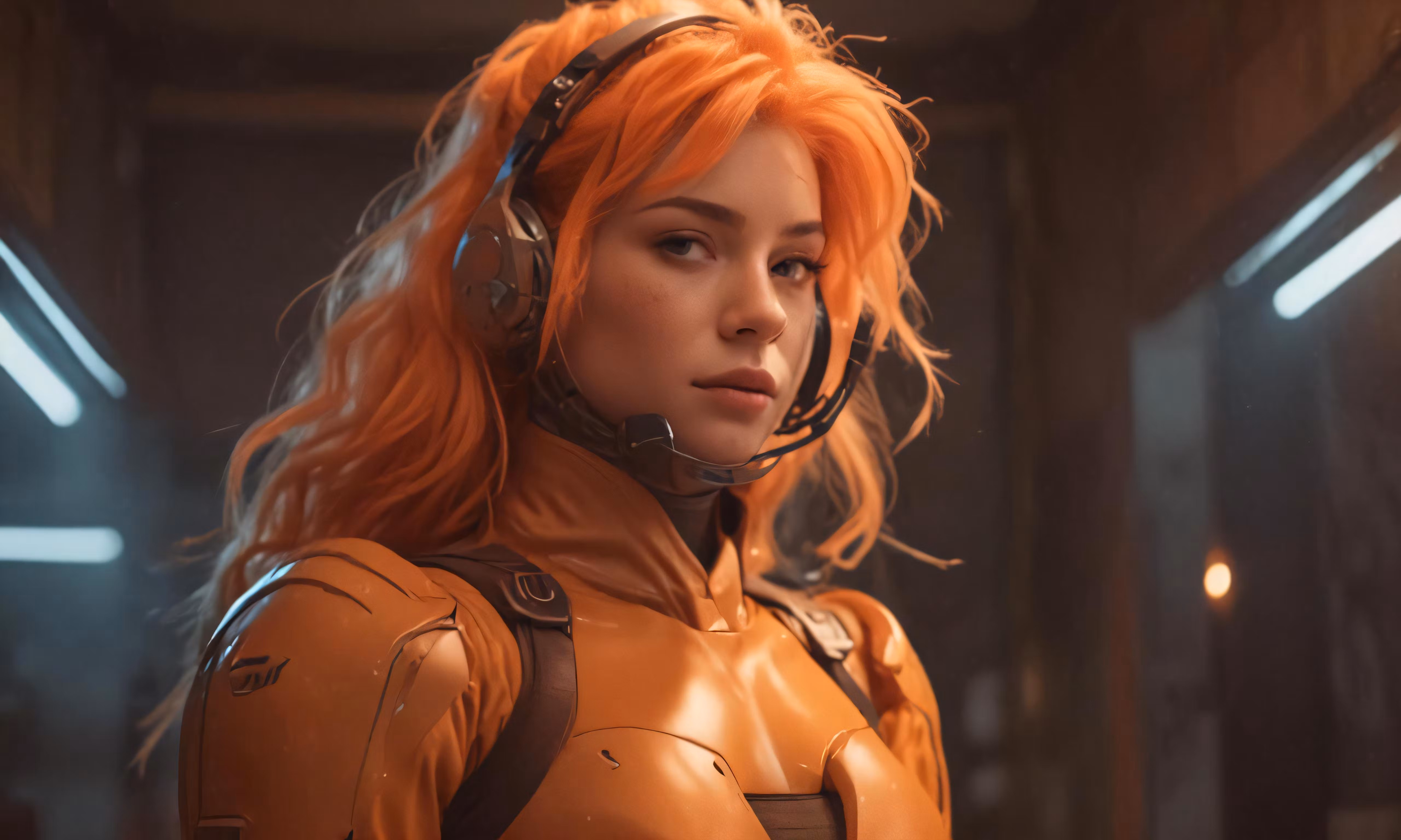 High resolution picture, free to use, a woman wearing ear muffs in a sci   fil suit