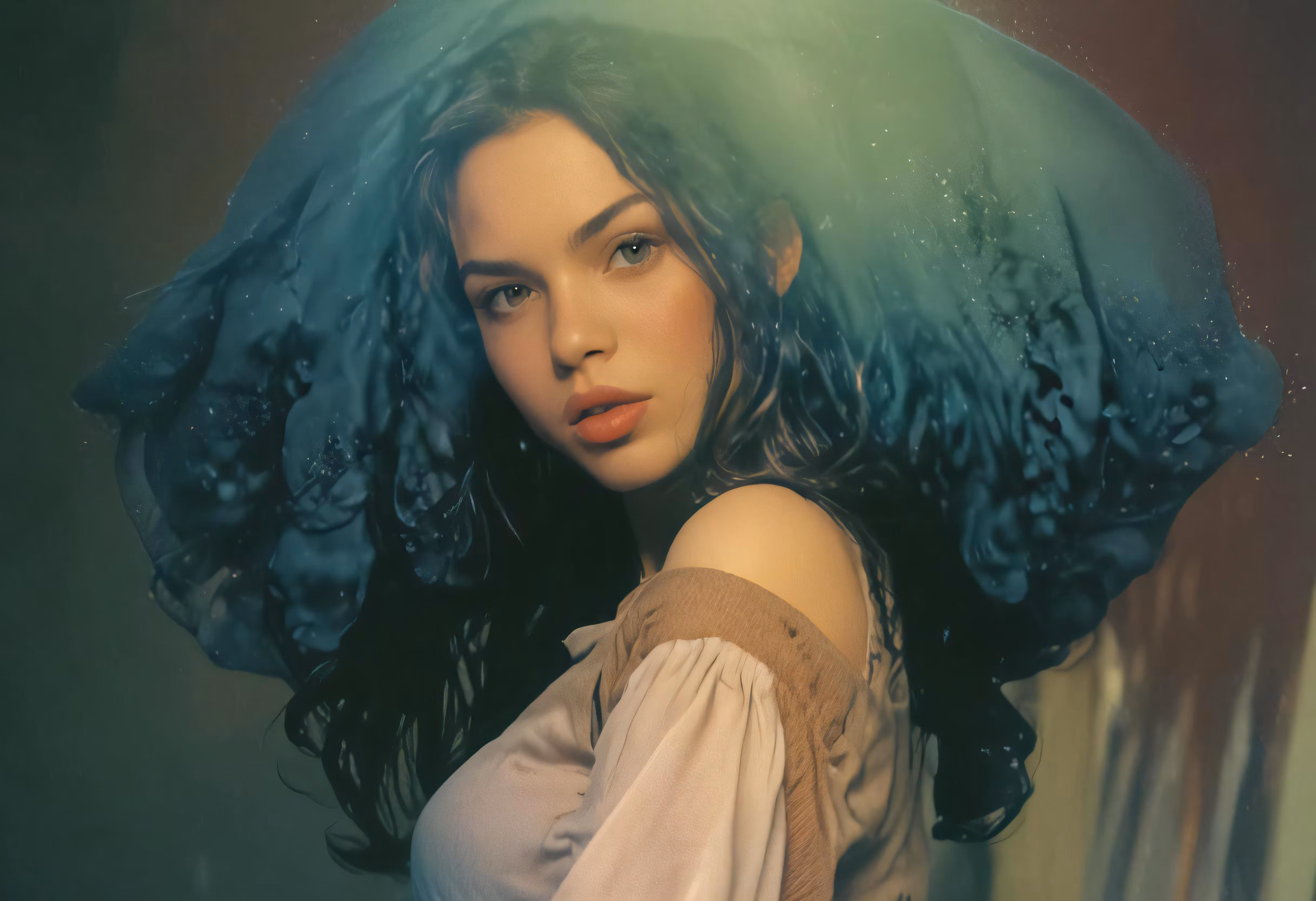 High resolution picture, free to use, a woman with a blue umbrella on her head