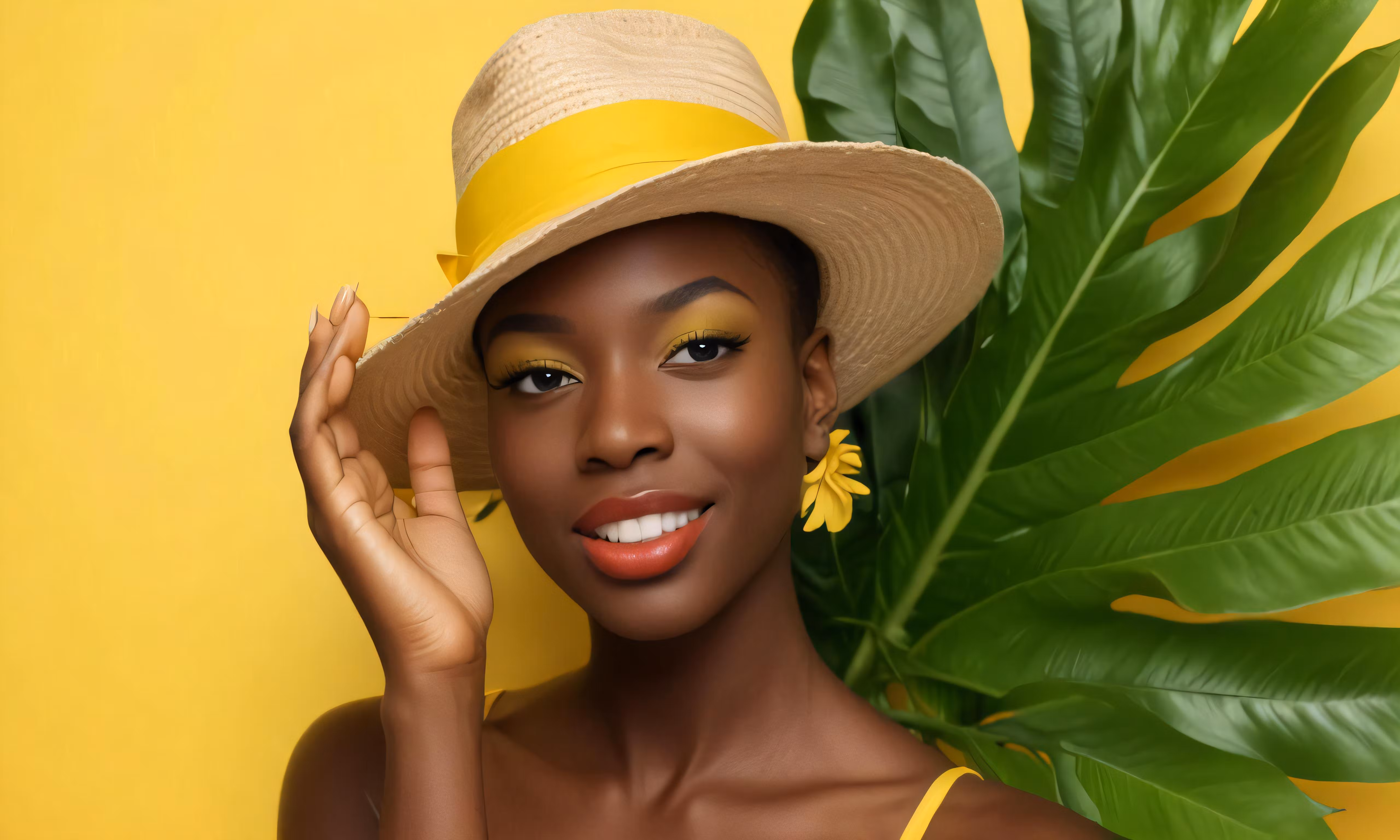 High resolution picture, free to use, a woman with a bright smile and a bright hat
