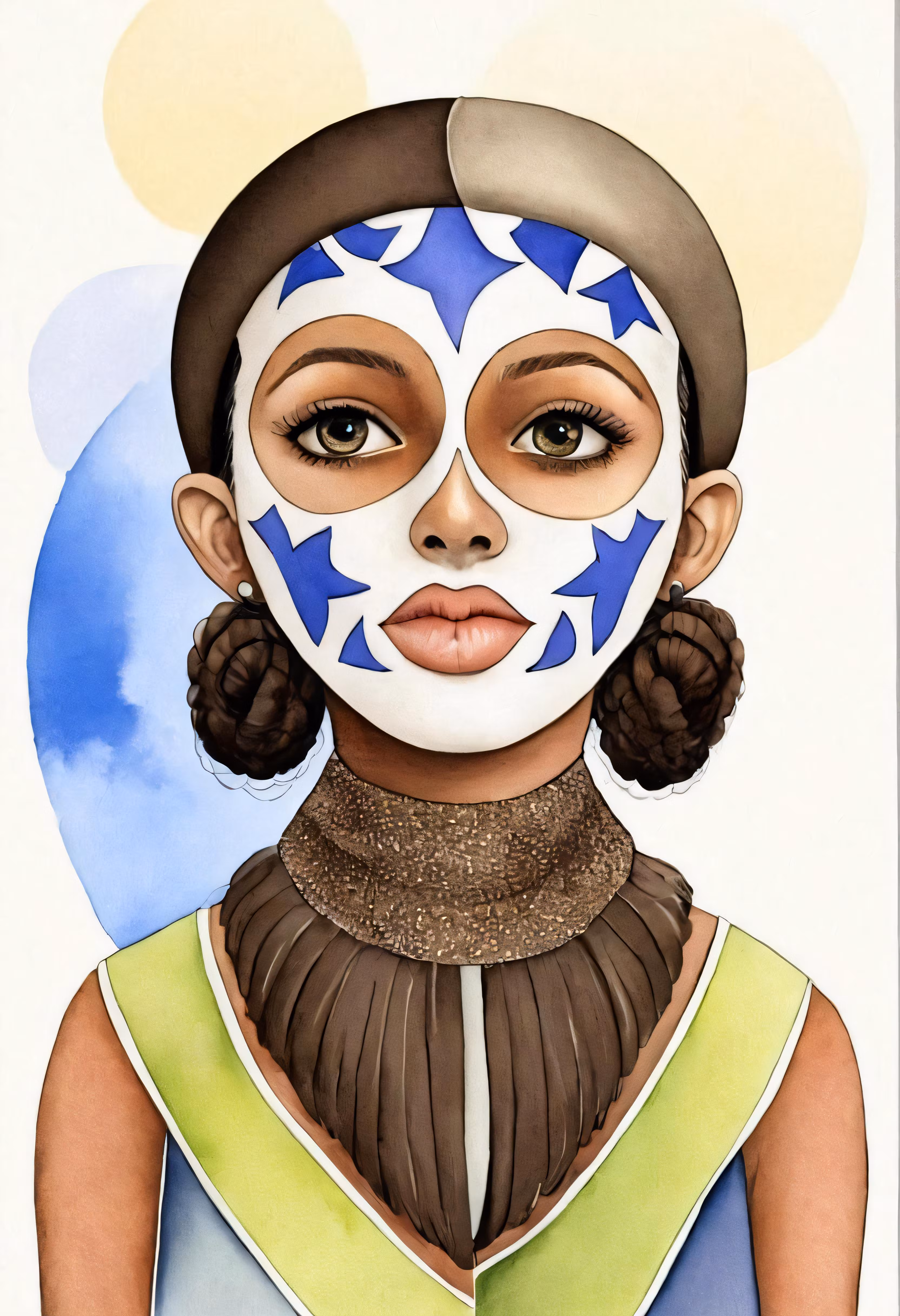 High resolution picture, free to use, a woman with a face painted blue and white