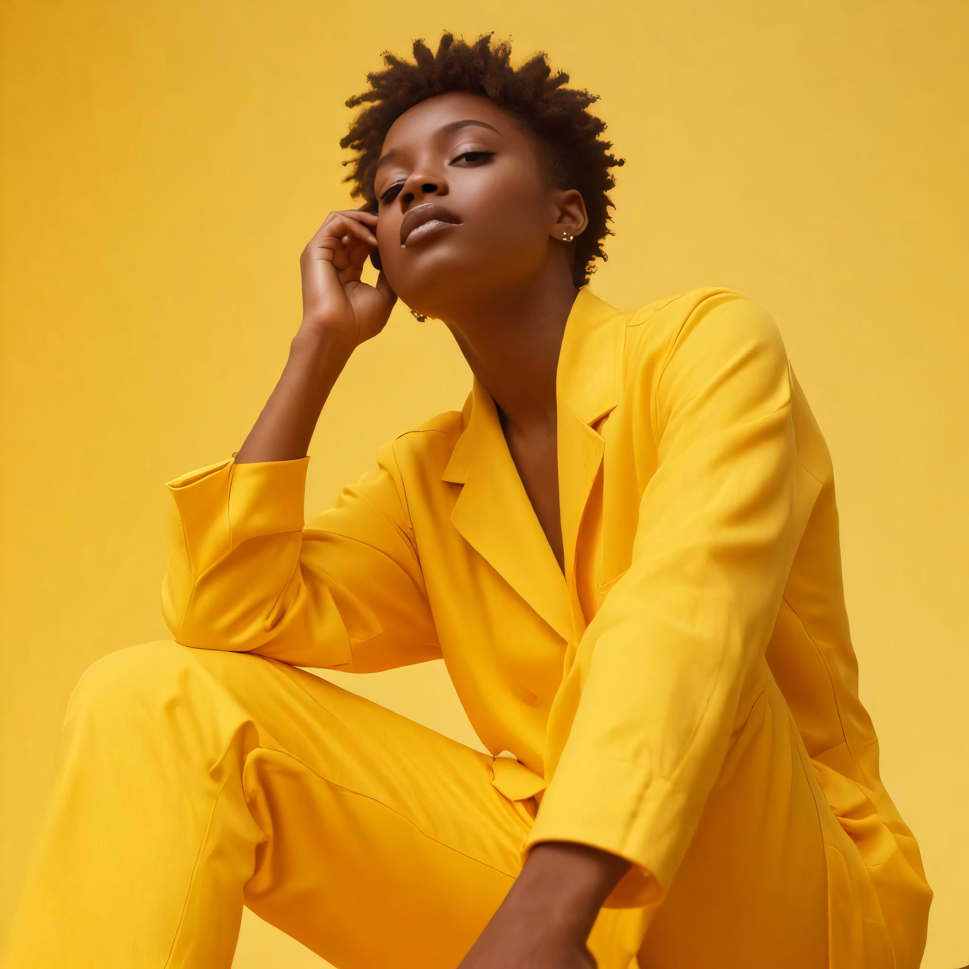 High resolution picture, free to use, a woman with a hand on her face sitting and posing