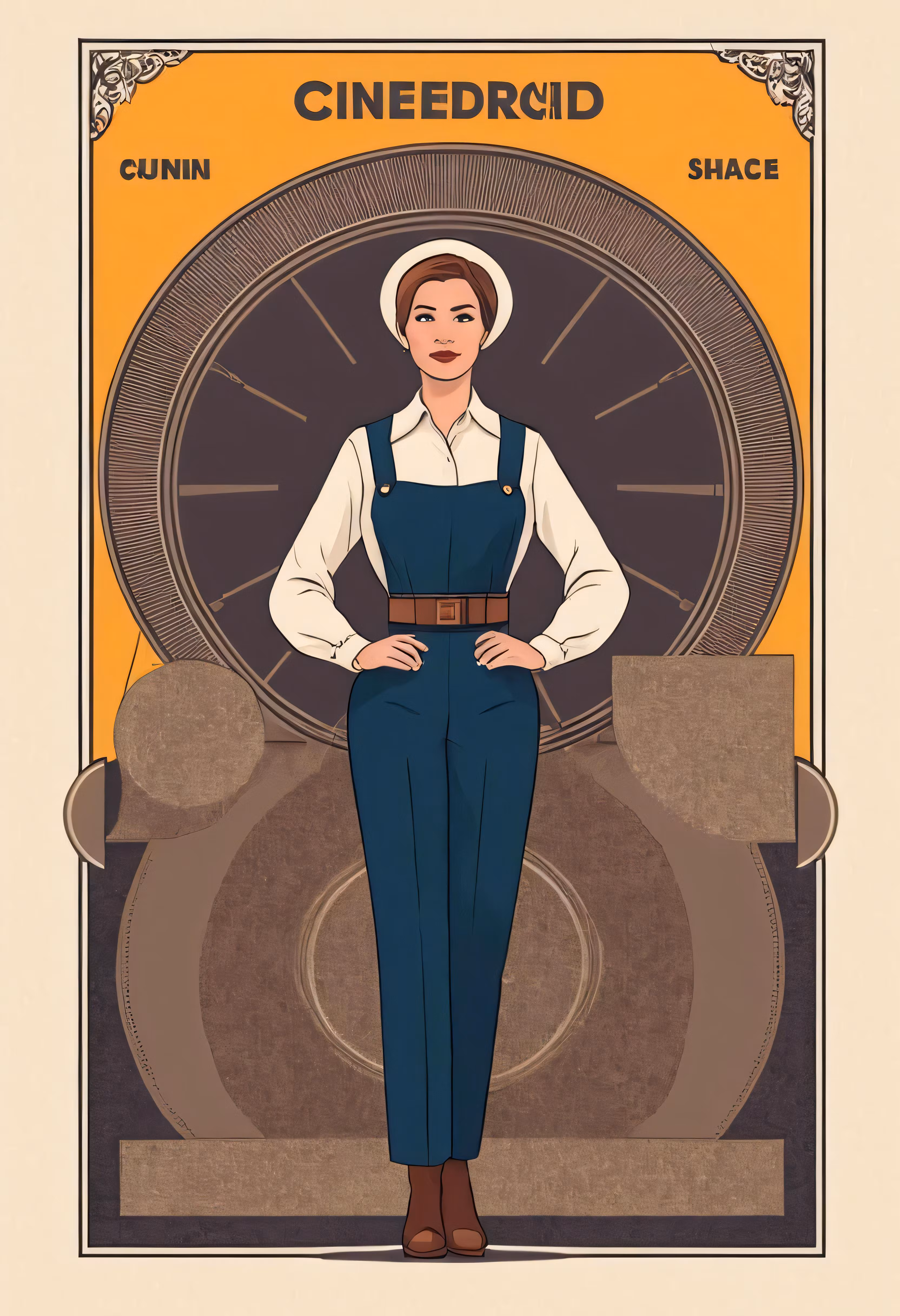 High resolution picture, free to use, a woman with a hat on standing next to a poster