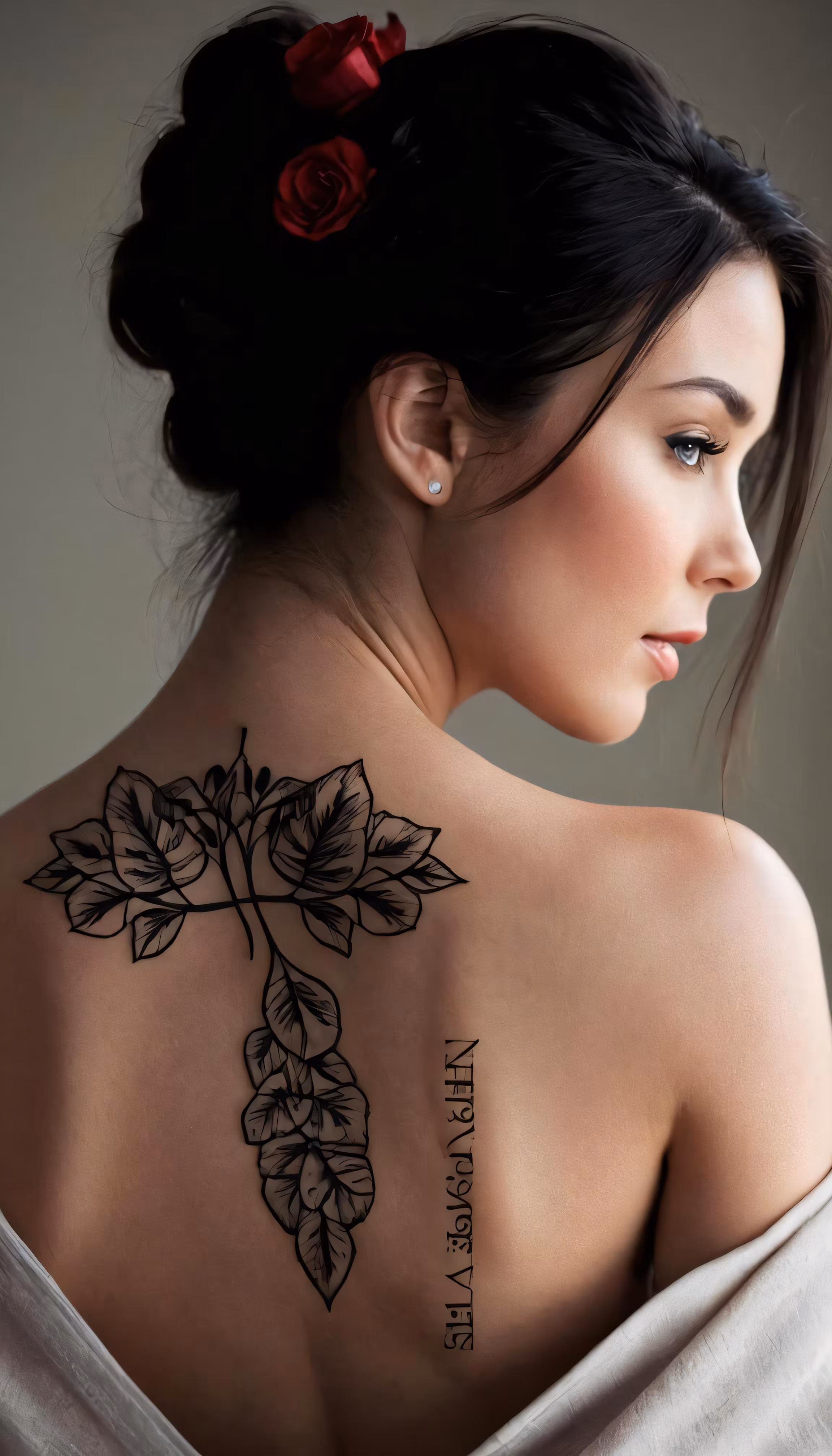 High resolution picture, free to use, a woman with a red flower tattoo on her upper back