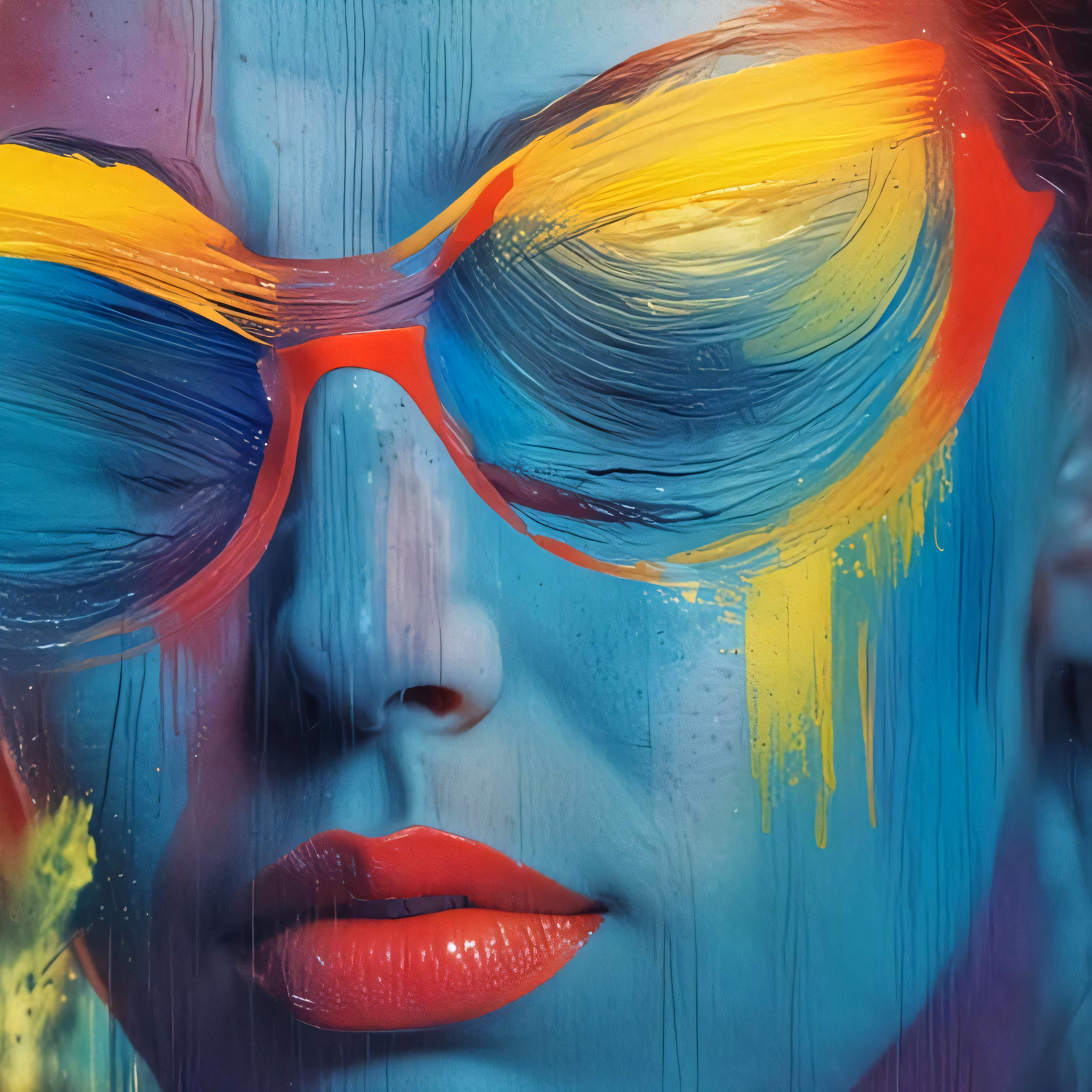 High resolution picture, free to use, a woman with bright glasses and colorful paint