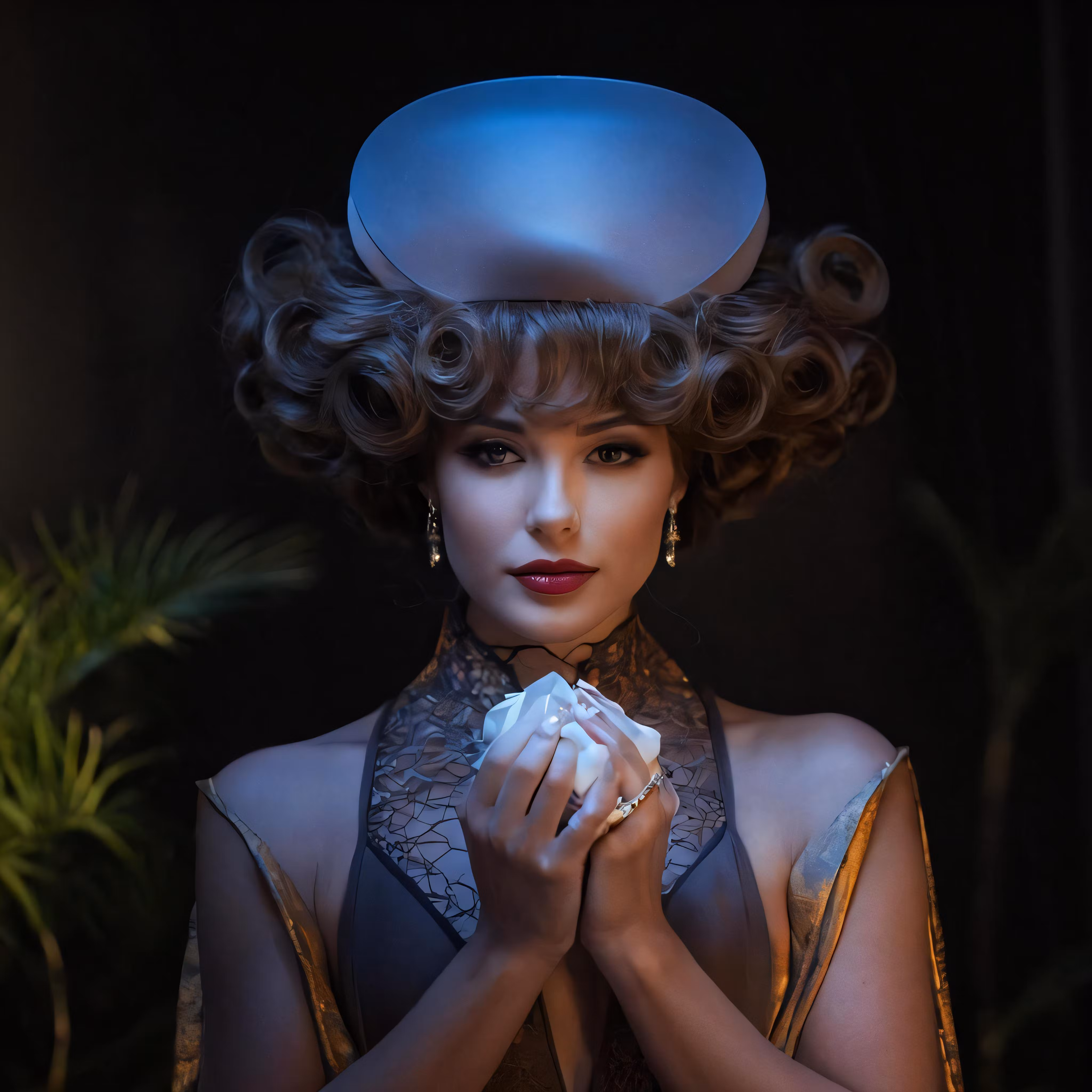 High resolution picture, free to use, a woman with curly hair is holding something in her hands