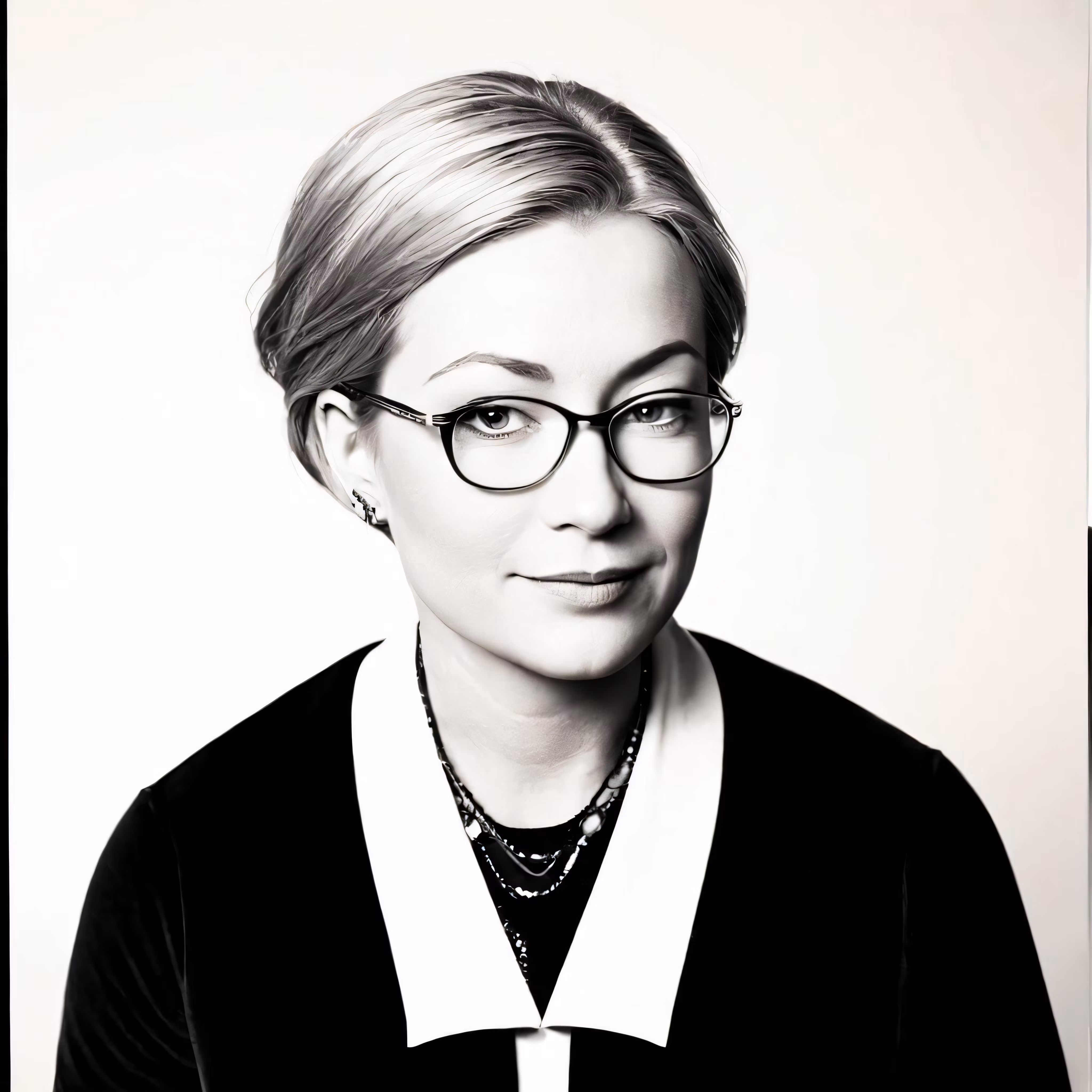 High resolution picture, free to use, a woman with glasses poses for a black and white photo