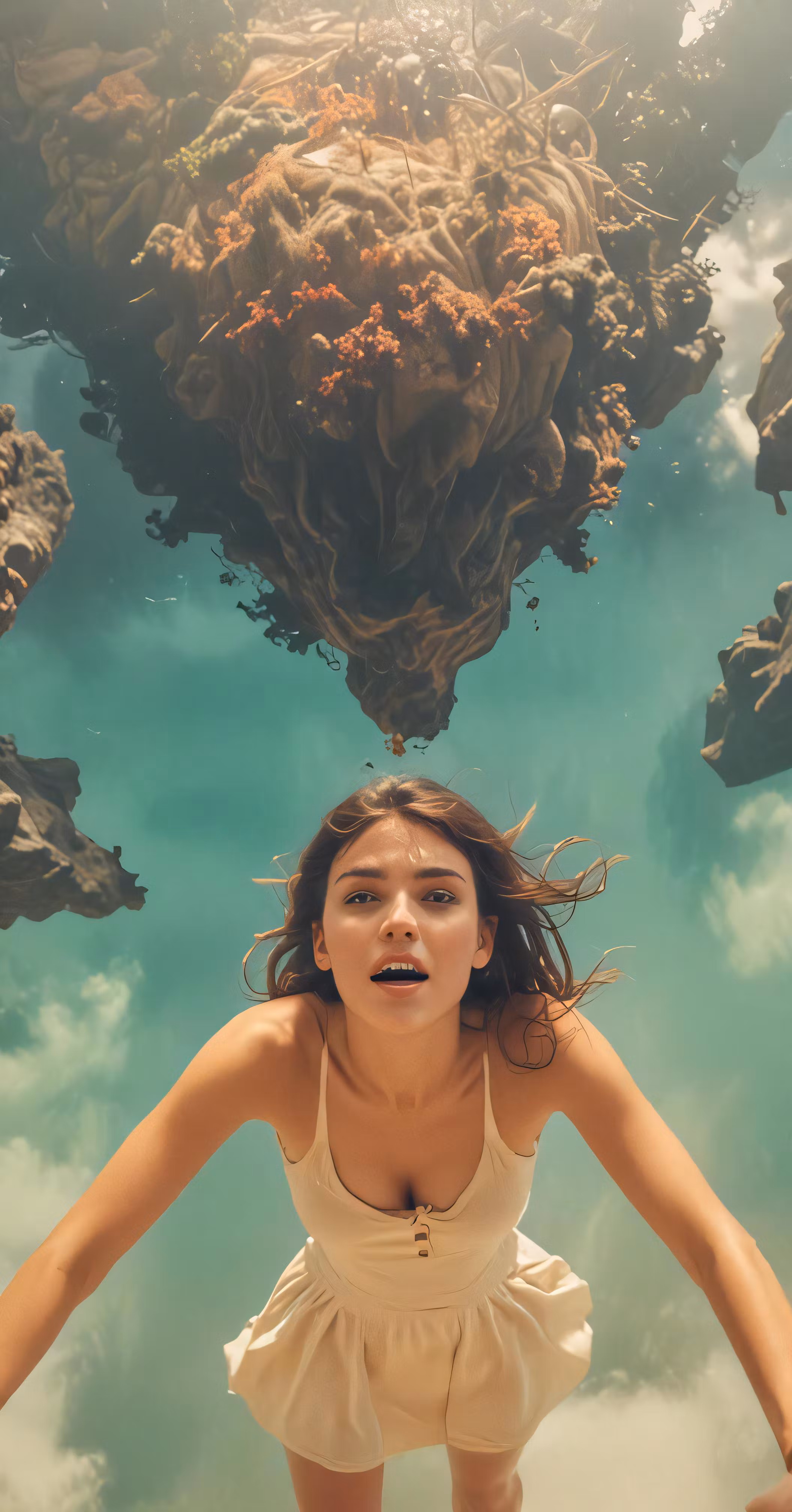 High resolution picture, free to use, a woman with her arms in the air looking up at something