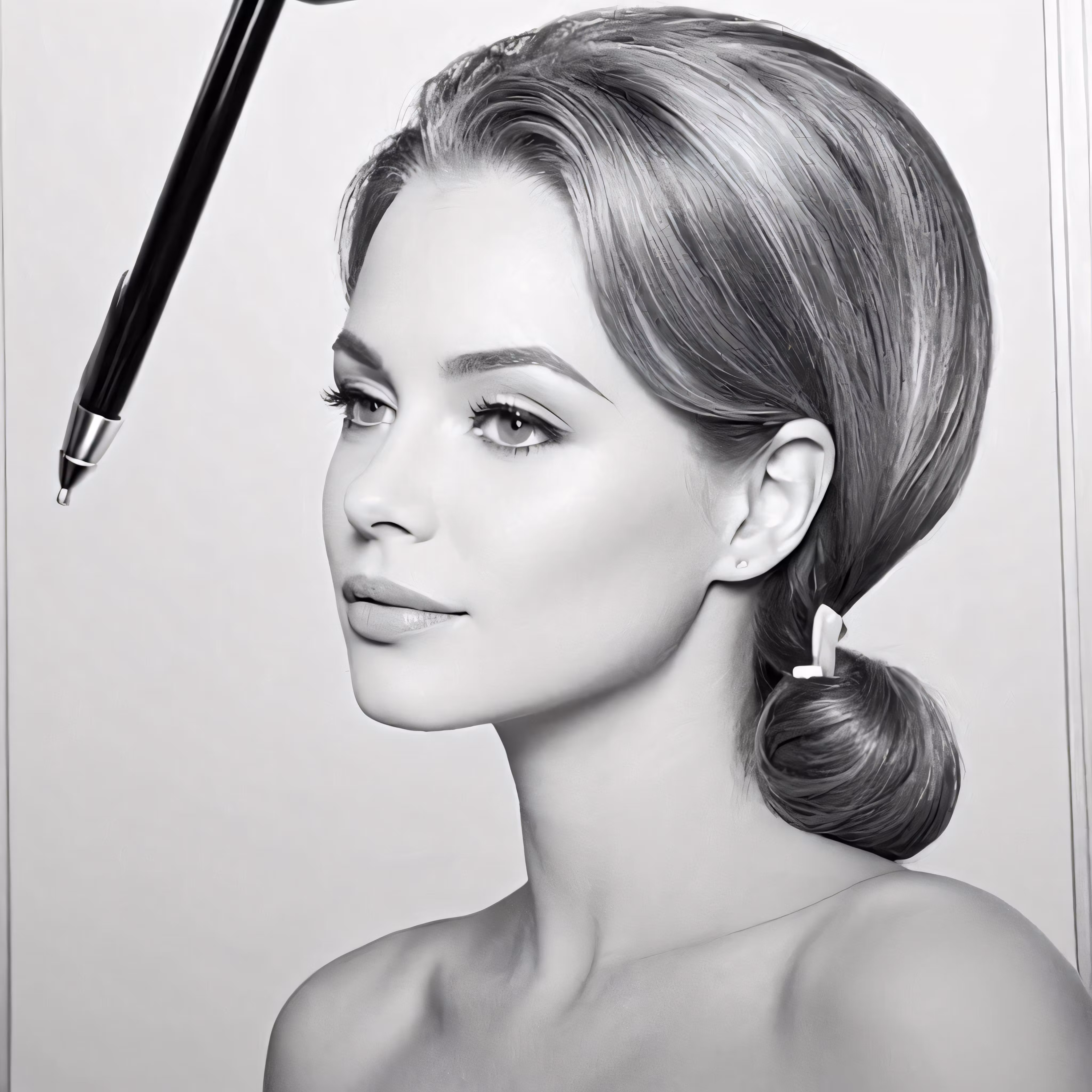 High resolution picture, free to use, a woman with her hair styled in a bun and looking away