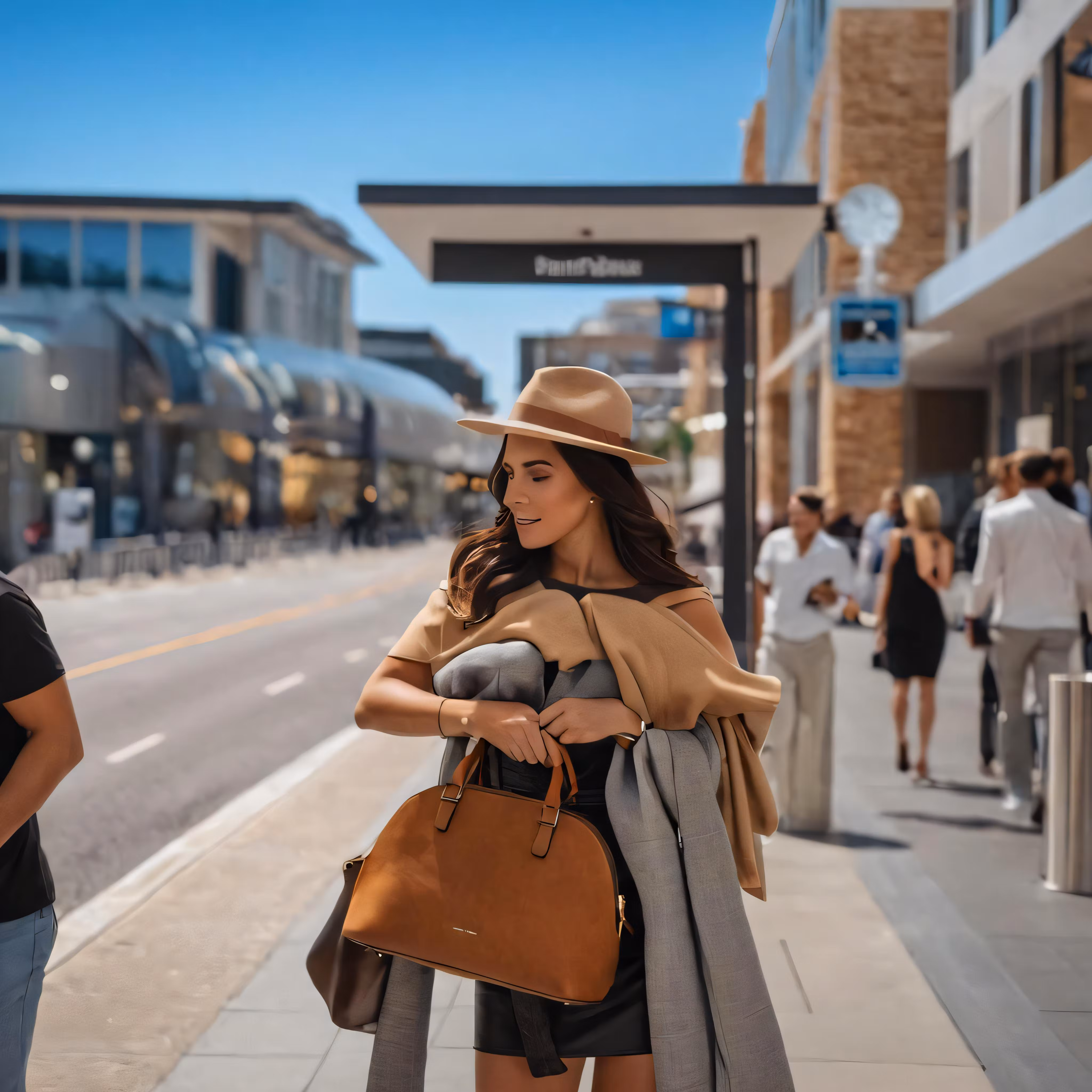 High resolution picture, free to use, a woman with her purse walking down a sidewalk