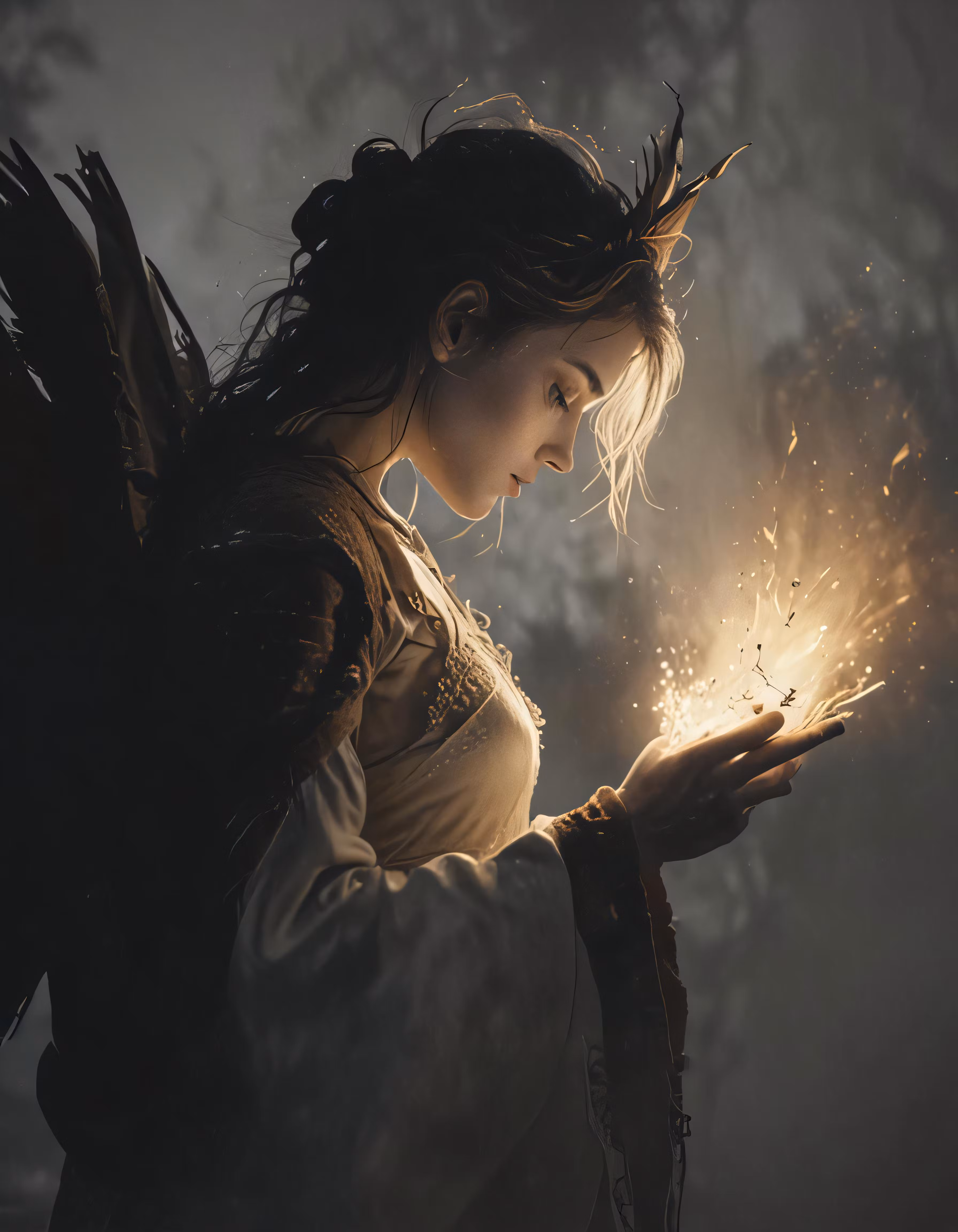 High resolution picture, free to use, a woman with large wings holding a lit cigarette